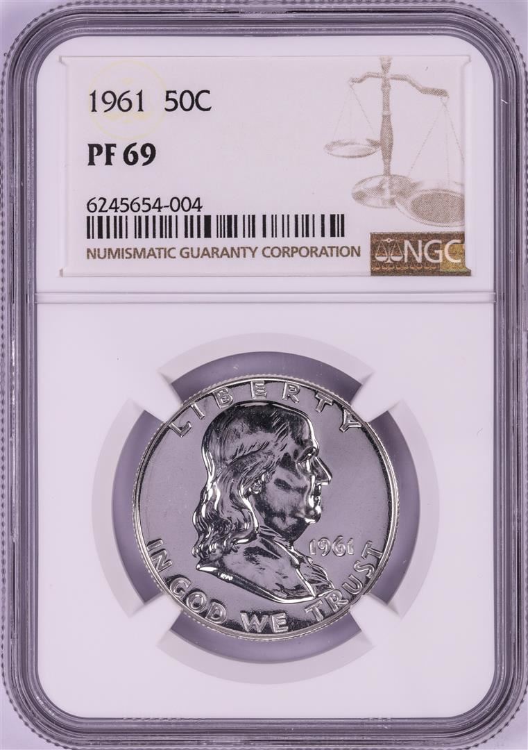 One 1961 Proof Franklin Half Dollar Coin NGC PF69. NGC Certified.