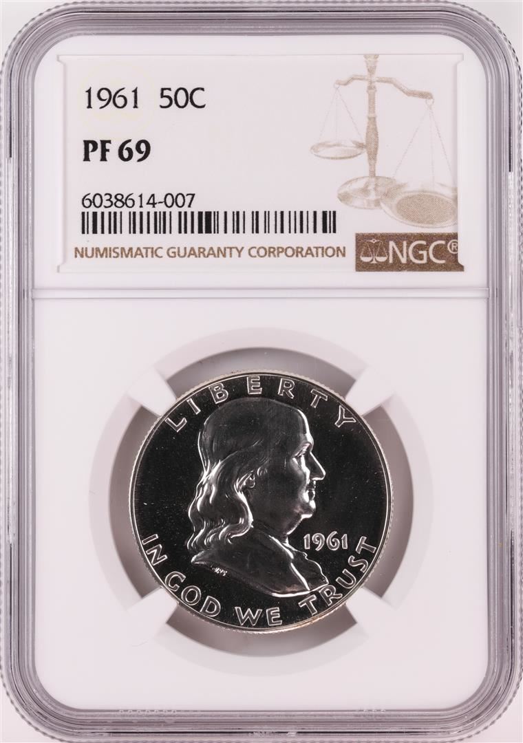 One 1961 Proof Franklin Half Dollar Coin NGC PF69. NGC Certified.