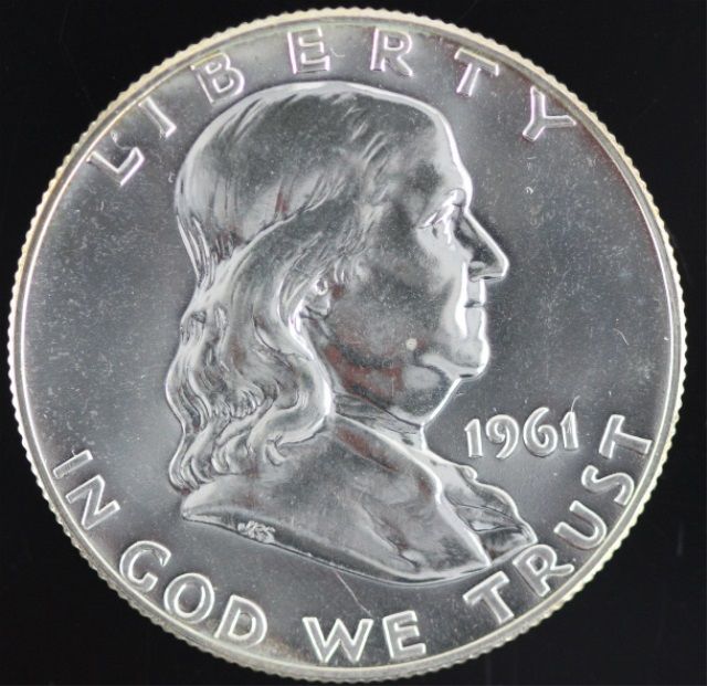 This stunning coin is a 1961 Proof Franklin Half Dollar. This would make a welcome addition to any collection. Made of 90% silver this coin has a value of over $20.