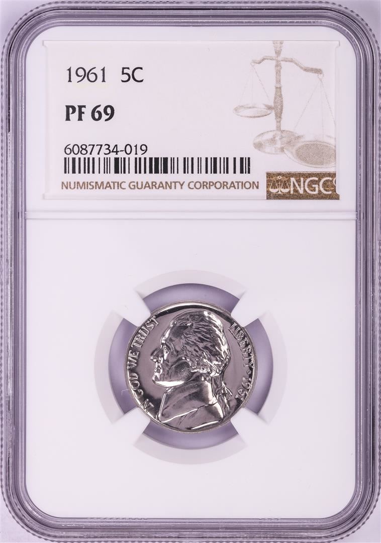 One 1961 Proof Jefferson Nickel Coin NGC PF69. NGC Certified.