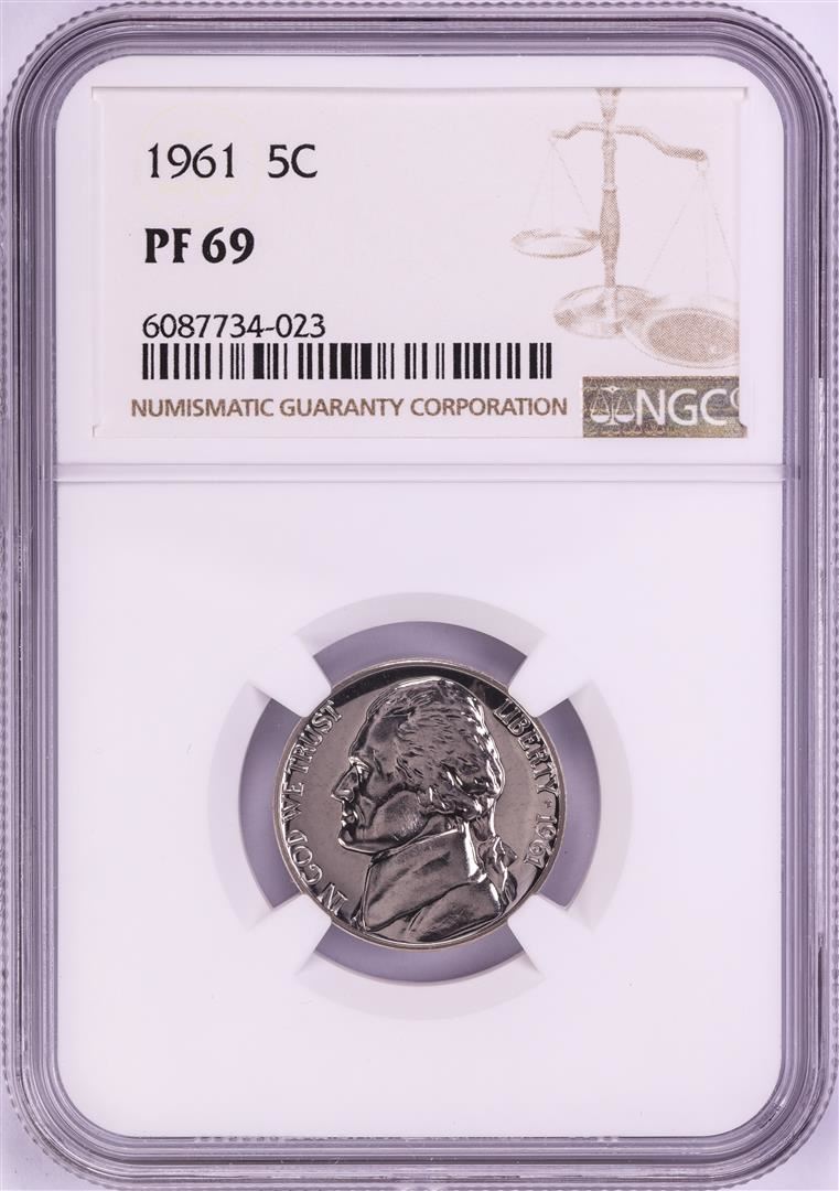One 1961 Proof Jefferson Nickel Coin NGC PF69. NGC Certified.