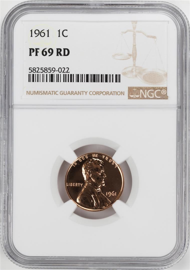 One 1961 Proof Lincoln Memorial Cent Coin NGC PF69RD. NGC Certified.