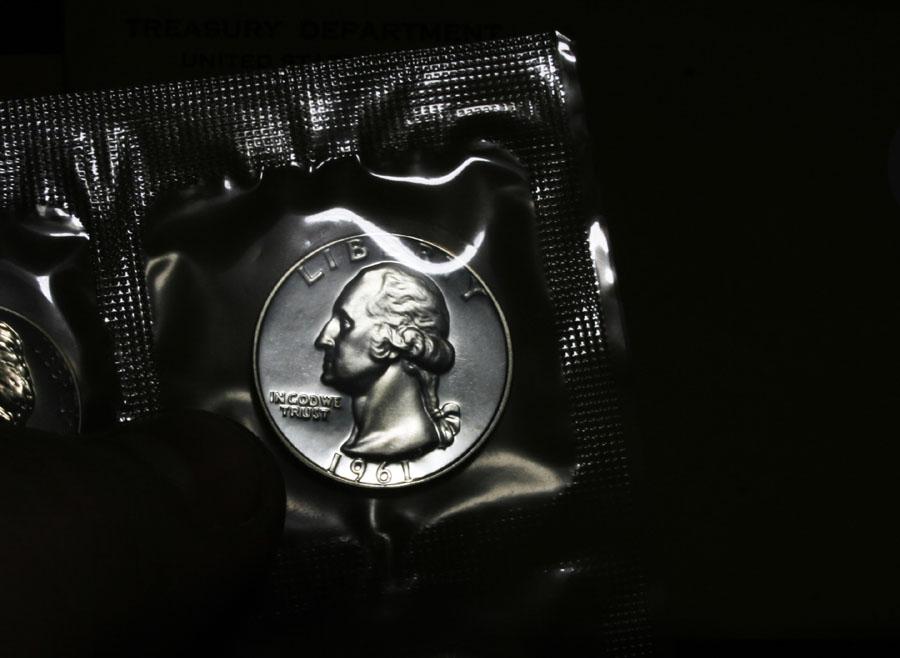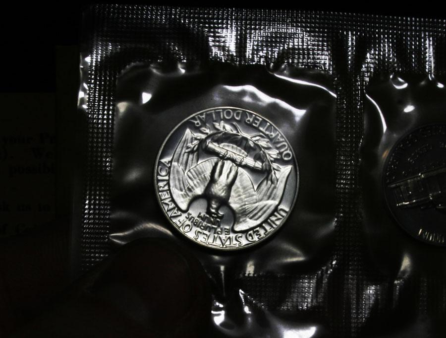 The highlight of the set is a fantastic Cameo Washington Quarter. PCGS lists an ms67 Cameo Quarter at $55 The set, has a 90% Proof Silver Franklin Half Dollar, a 90% Proof Silver Quarter, a 90% Silver Dime, 2 Other Proof Coins, all in the Original Packaging including The Mint "Memo". Estimated Value $75