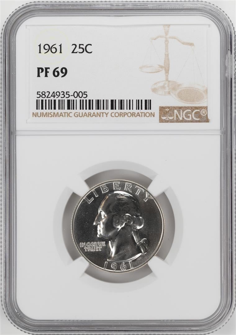One 1961 Proof Washington Quarter Coin NGC PF69. NGC Certified.