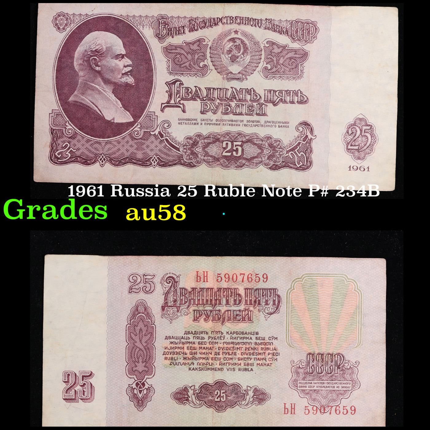 1961 Russia 25 Ruble Note P# 234B Grades Choice AU/BU Slider.