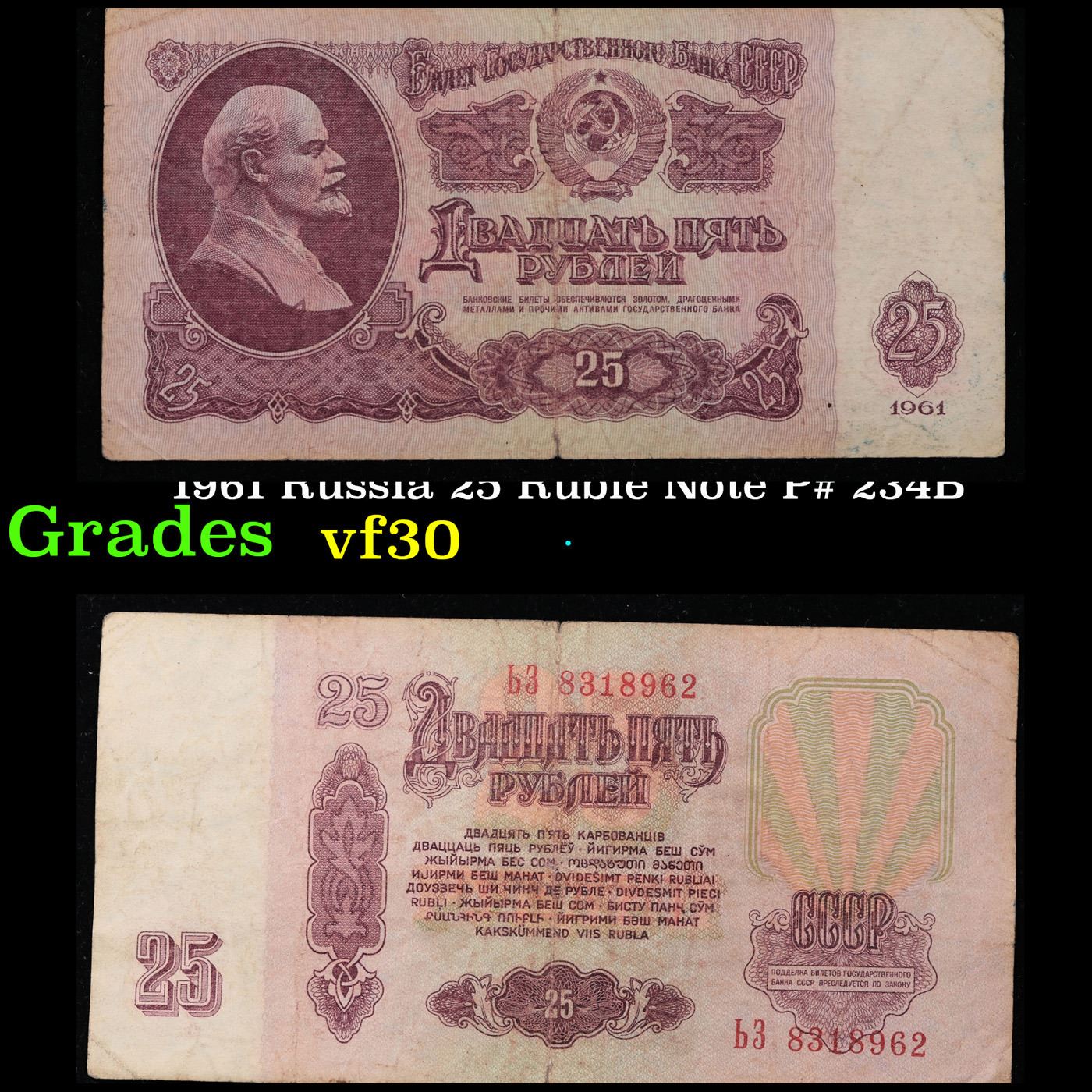 1961 Russia 25 Ruble Note P# 234B Grades vf++.