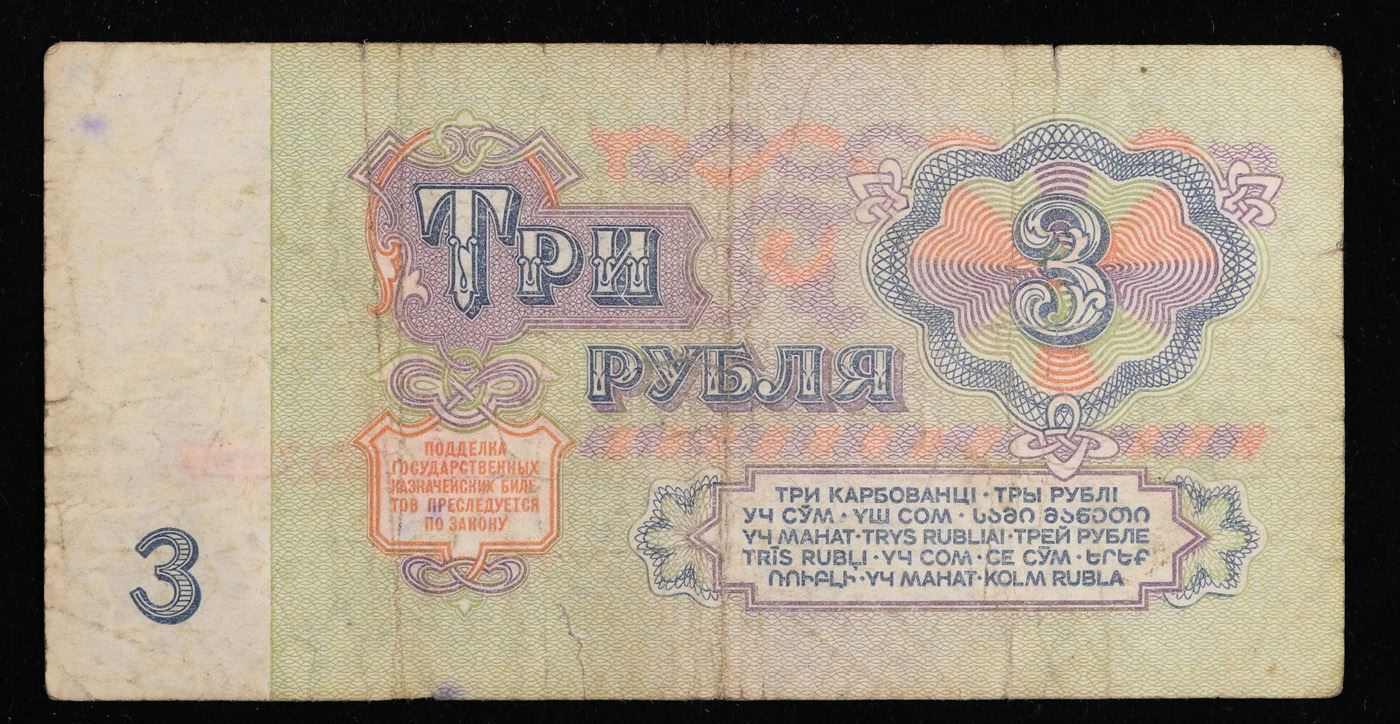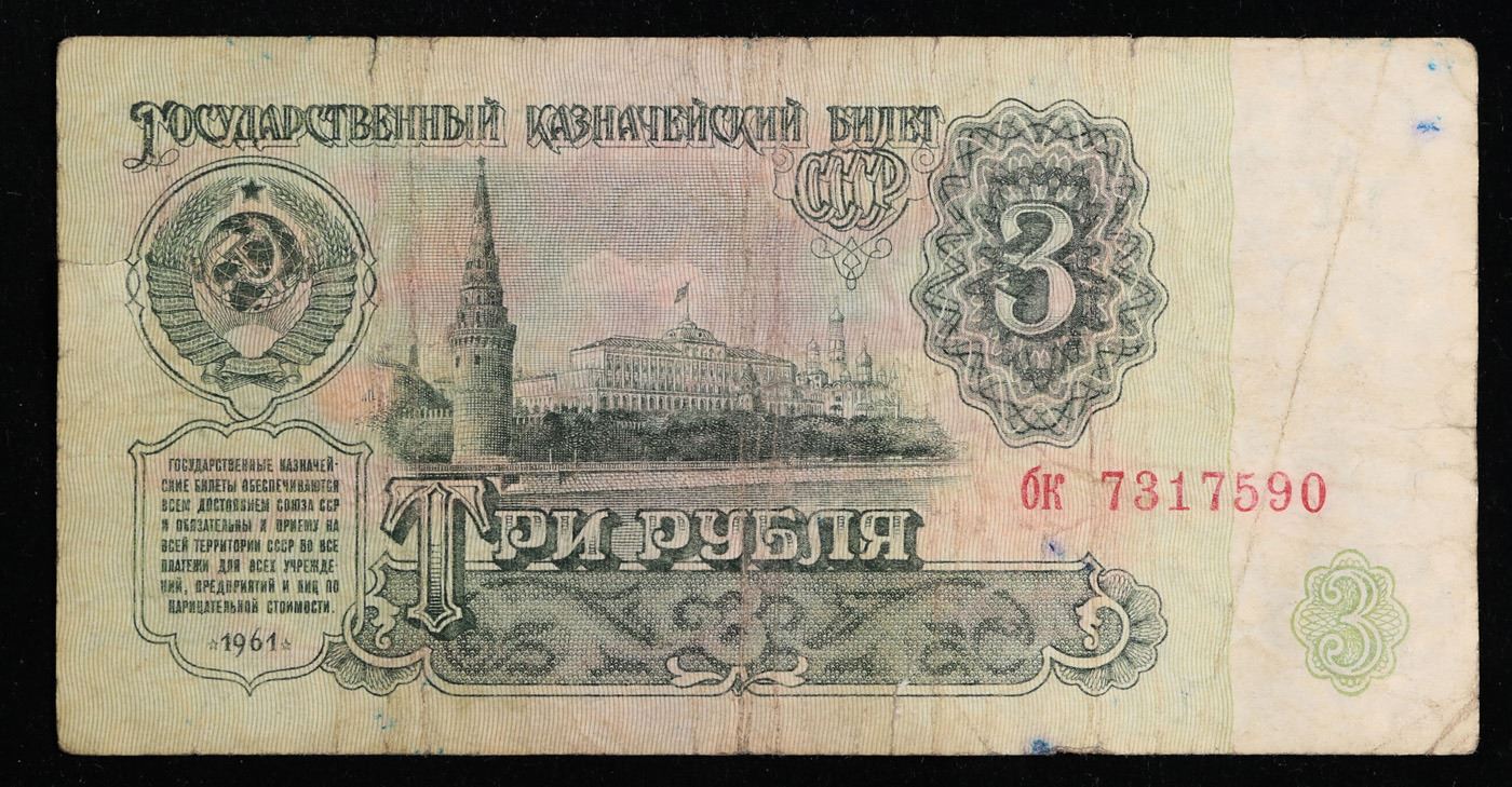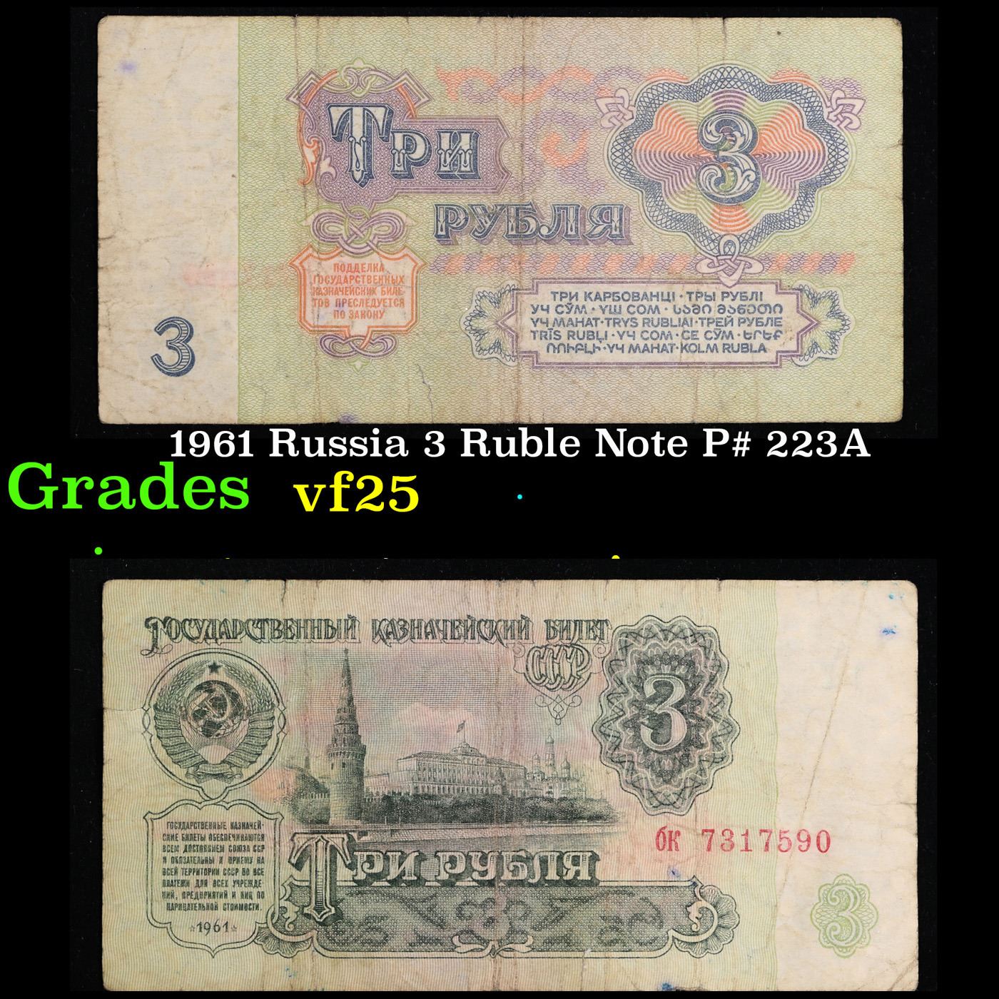 1961 Russia 3 Ruble Note P# 223A Grades vf+.