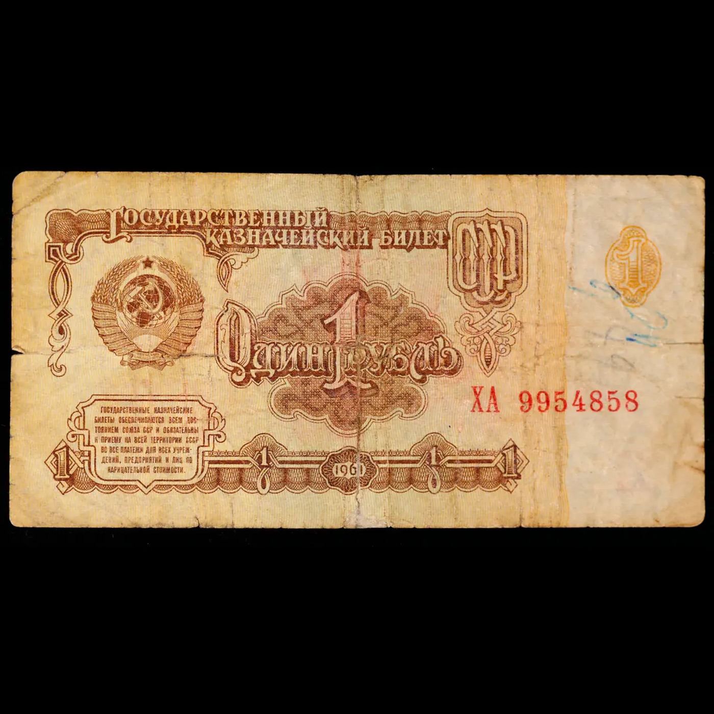 1961 Russia (Soviet Union) 1 Ruble Note Grades f, fine. The "Sixth Soviet Ruble" was issued first in 1961, and the designs for both the non-commemorative coins and paper currency of the Soviet Union almost remained identical from 1961 nearly until the fall of the Soviet Union in 1991. Briefly before the Soviet Union fell, there was the monetary reform of 1991 and the release of the Seventh Soviet Ruble, with designs that were fairly similar to the 1961 Rubles. Interestingly, the 500 Ruble note only existed for 2 days before the collapse of the Soviet Union, and the 1000 Soviet Ruble note only came into existence 3 months after the collapse of the Soviet Union. Some Soviet banknotes were printed and remained in use in various ex-Soviet states in 1992-1993, still utilizing the 1991 Soviet designs.