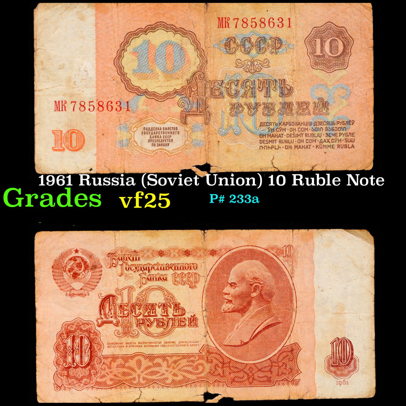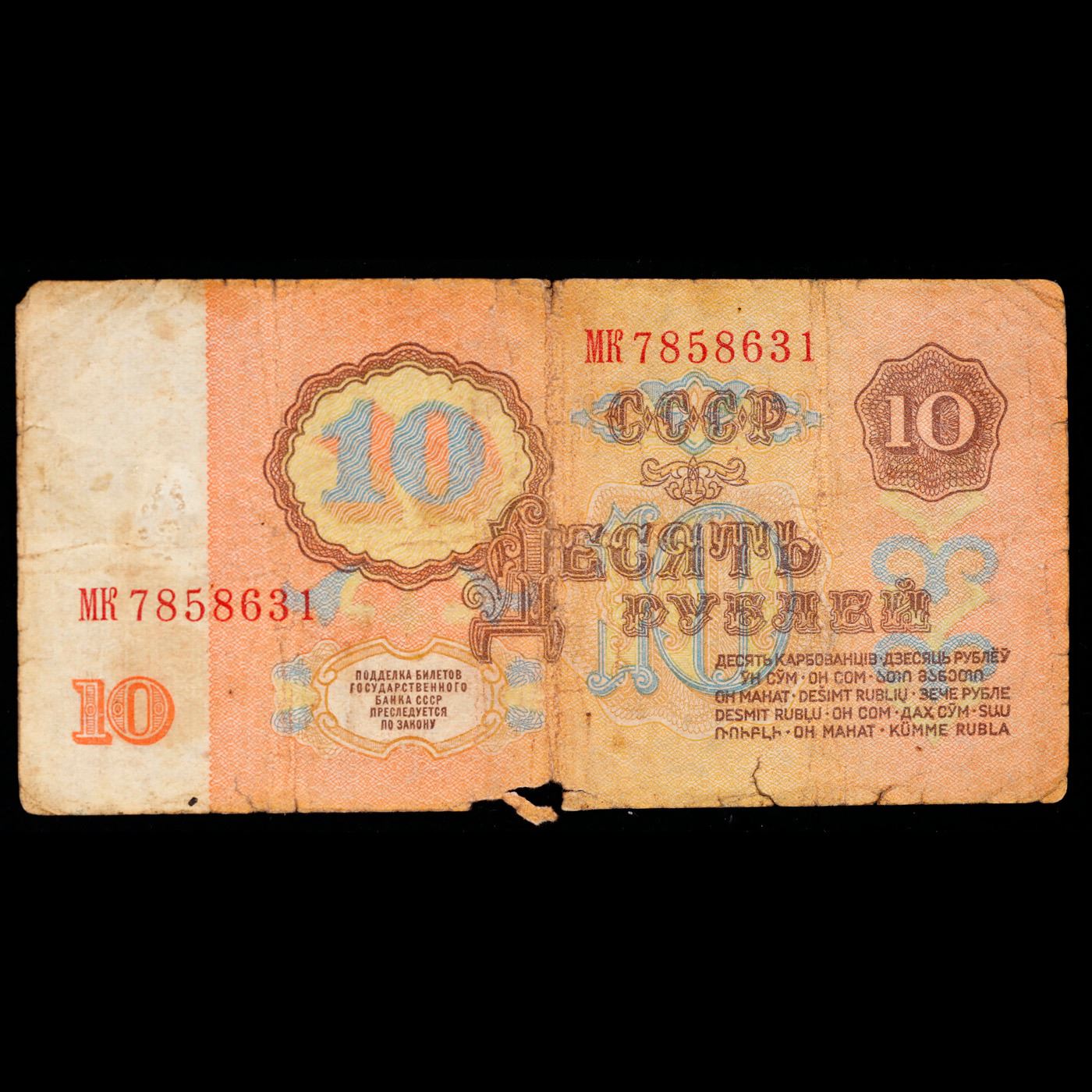 1961 Russia (Soviet Union) 10 Ruble Note Grades vf+. The "Sixth Soviet Ruble" was issued first in 1961, and the designs for both the non-commemorative coins and paper currency of the Soviet Union almost remained identical from 1961 nearly until the fall of the Soviet Union in 1991. Briefly before the Soviet Union fell, there was the monetary reform of 1991 and the release of the Seventh Soviet Ruble, with designs that were fairly similar to the 1961 Rubles. Interestingly, the 500 Ruble note only existed for 2 days before the collapse of the Soviet Union, and the 1000 Soviet Ruble note only came into existence 3 months after the collapse of the Soviet Union. Some Soviet banknotes were printed and remained in use in various ex-Soviet states in 1992-1993, still utilizing the 1991 Soviet designs.
