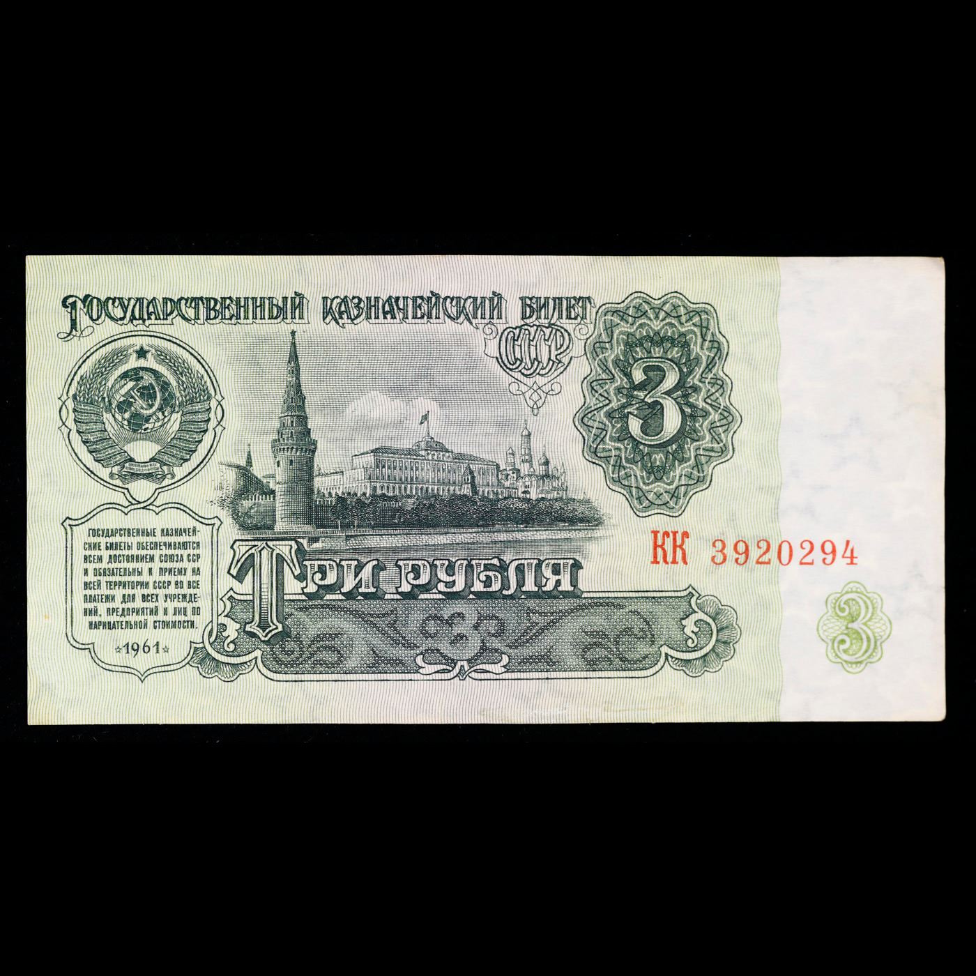 1961 Russia (Soviet Union) 3 Ruble Note Grades Choice AU/BU Slider. The "Sixth Soviet Ruble" was issued first in 1961, and the designs for both the non-commemorative coins and paper currency of the Soviet Union almost remained identical from 1961 nearly until the fall of the Soviet Union in 1991. Briefly before the Soviet Union fell, there was the monetary reform of 1991 and the release of the Seventh Soviet Ruble, with designs that were fairly similar to the 1961 Rubles. Interestingly, the 500 Ruble note only existed for 2 days before the collapse of the Soviet Union, and the 1000 Soviet Ruble note only came into existence 3 months after the collapse of the Soviet Union. Some Soviet banknotes were printed and remained in use in various ex-Soviet states in 1992-1993, still utilizing the 1991 Soviet designs.