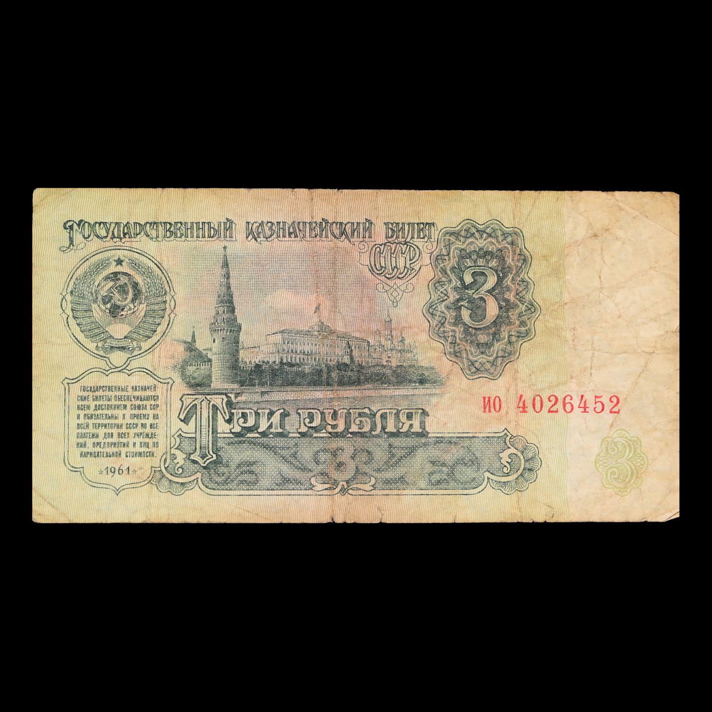1961 Russia (Soviet Union) 3 Ruble Note Grades vf+. The "Sixth Soviet Ruble" was issued first in 1961, and the designs for both the non-commemorative coins and paper currency of the Soviet Union almost remained identical from 1961 nearly until the fall of the Soviet Union in 1991. Briefly before the Soviet Union fell, there was the monetary reform of 1991 and the release of the Seventh Soviet Ruble, with designs that were fairly similar to the 1961 Rubles. Interestingly, the 500 Ruble note only existed for 2 days before the collapse of the Soviet Union, and the 1000 Soviet Ruble note only came into existence 3 months after the collapse of the Soviet Union. Some Soviet banknotes were printed and remained in use in various ex-Soviet states in 1992-1993, still utilizing the 1991 Soviet designs.