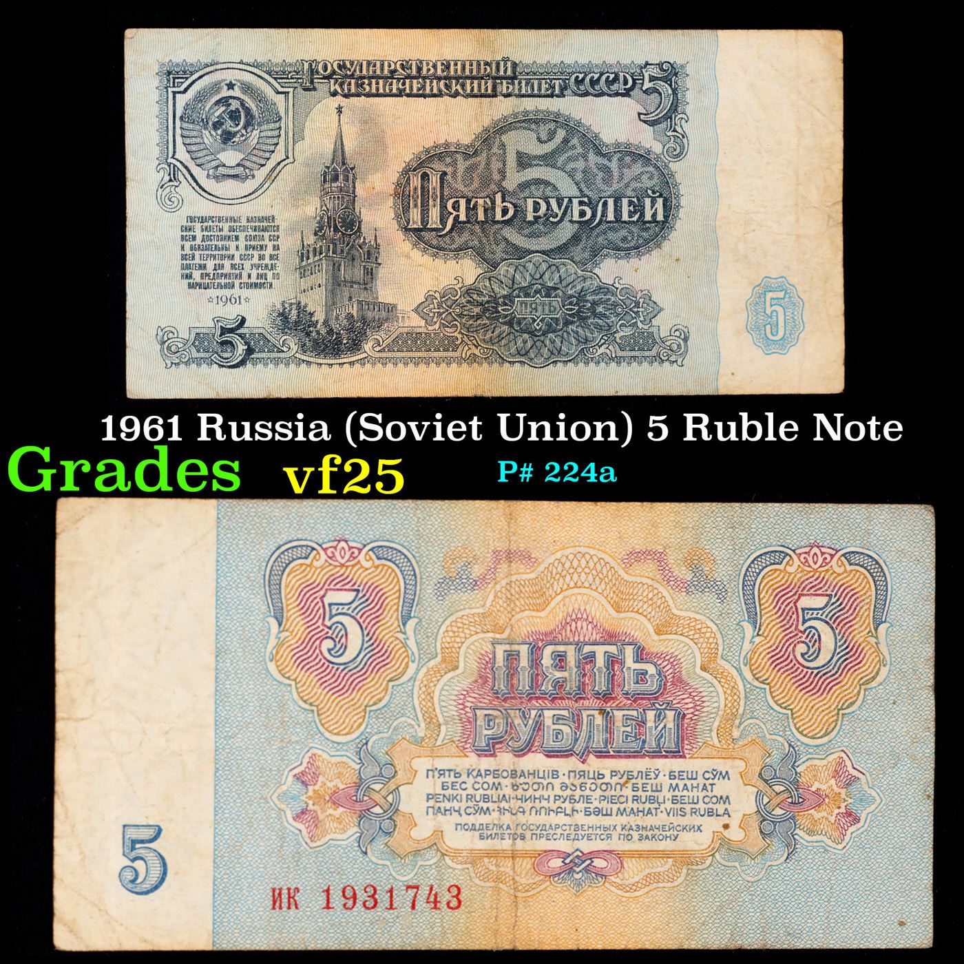 1961 Russia (Soviet Union) 5 Ruble Note Grades vf+. The "Sixth Soviet Ruble" was issued first in 1961, and the designs for both the non-commemorative coins and paper currency of the Soviet Union almost remained identical from 1961 nearly until the fall of the Soviet Union in 1991. Briefly before the Soviet Union fell, there was the monetary reform of 1991 and the release of the Seventh Soviet Ruble, with designs that were fairly similar to the 1961 Rubles. Interestingly, the 500 Ruble note only existed for 2 days before the collapse of the Soviet Union, and the 1000 Soviet Ruble note only came into existence 3 months after the collapse of the Soviet Union. Some Soviet banknotes were printed and remained in use in various ex-Soviet states in 1992-1993, still utilizing the 1991 Soviet designs.