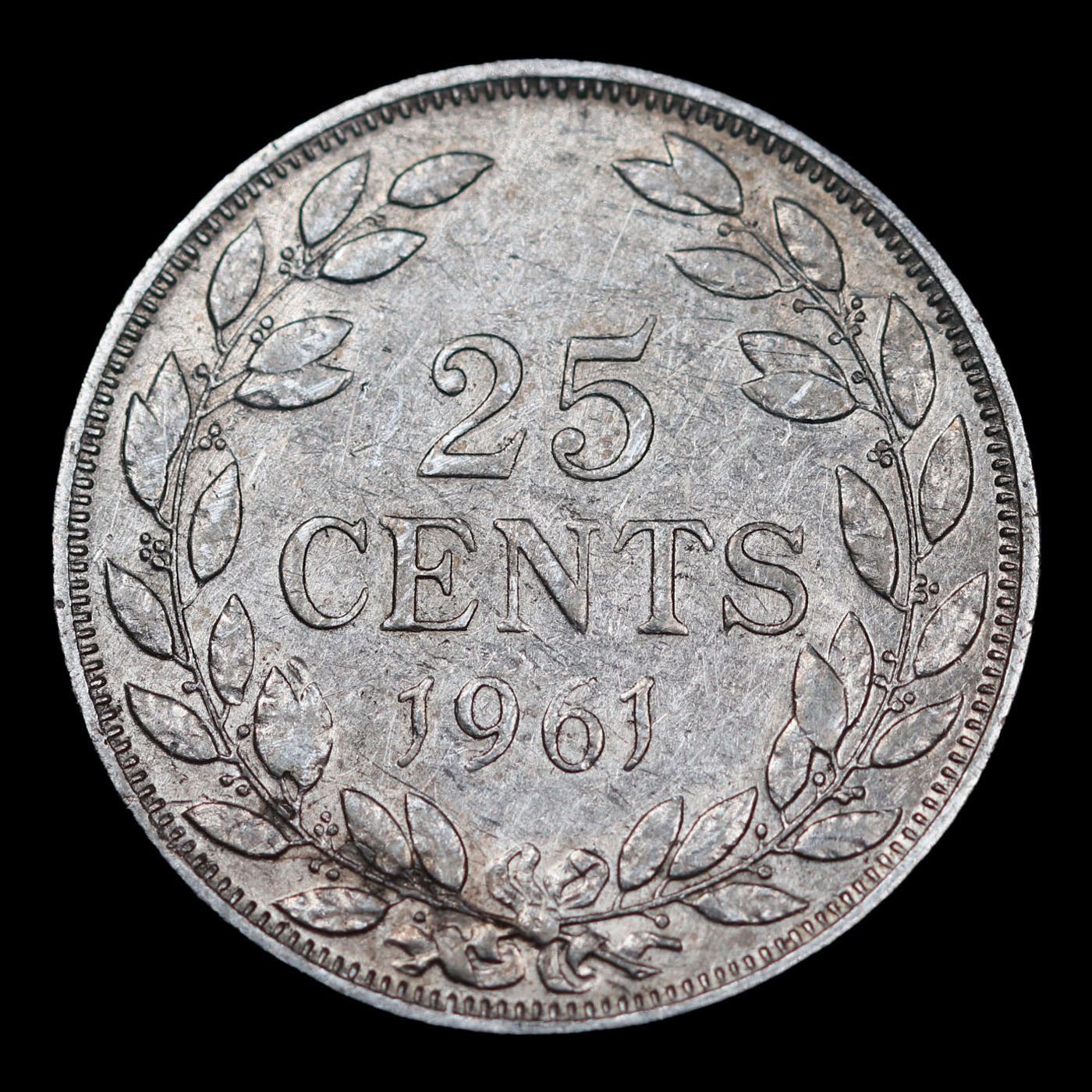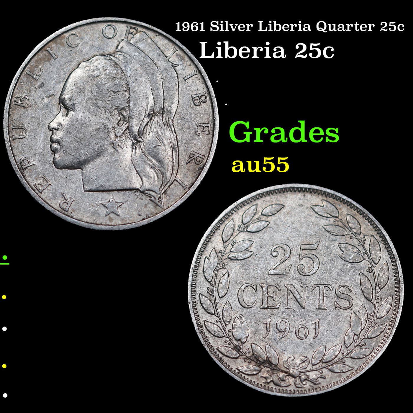 1961 Silver Liberia Quarter 25c Grades Choice AU.