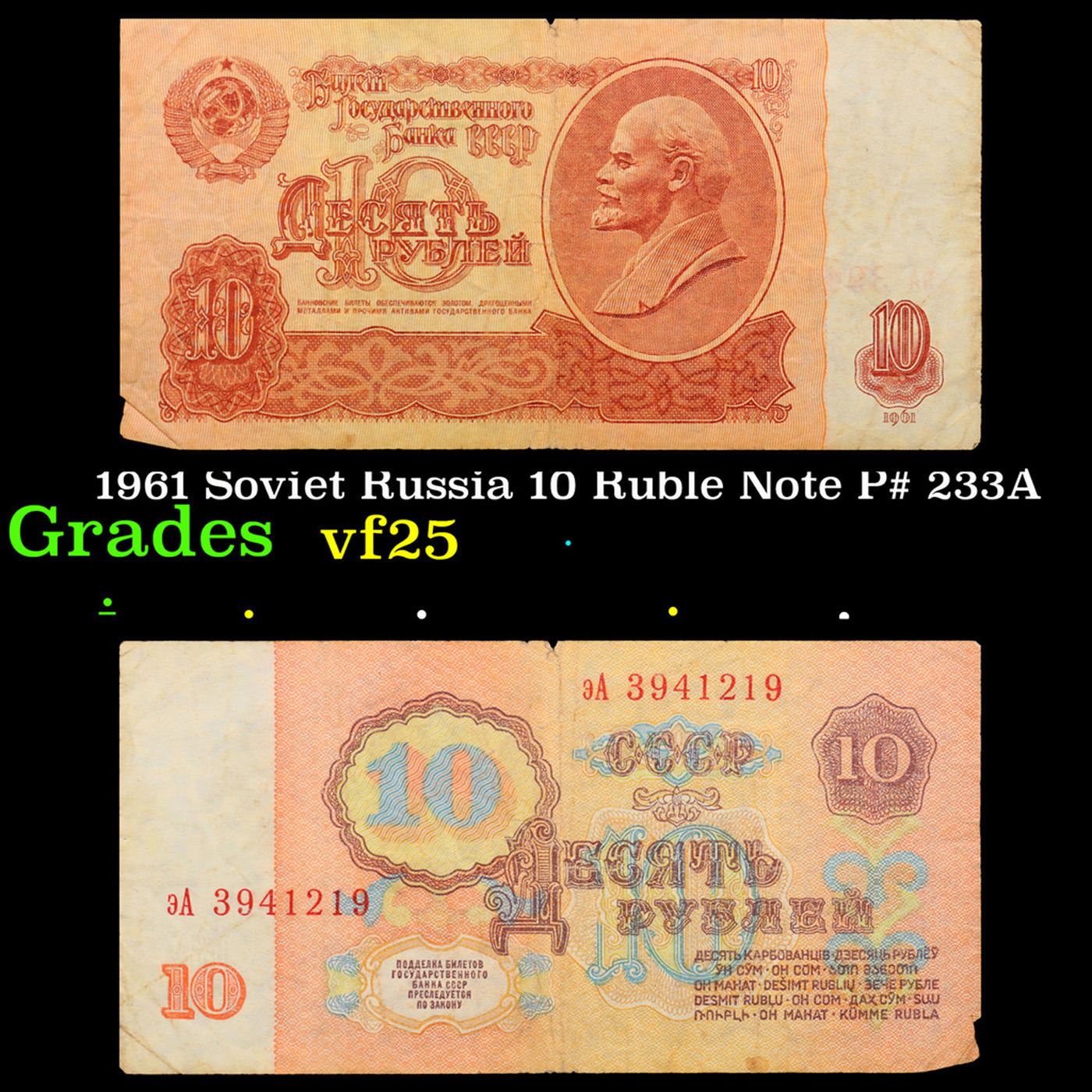 1961 Soviet Russia 10 Ruble Note P# 233A Grades vf+.