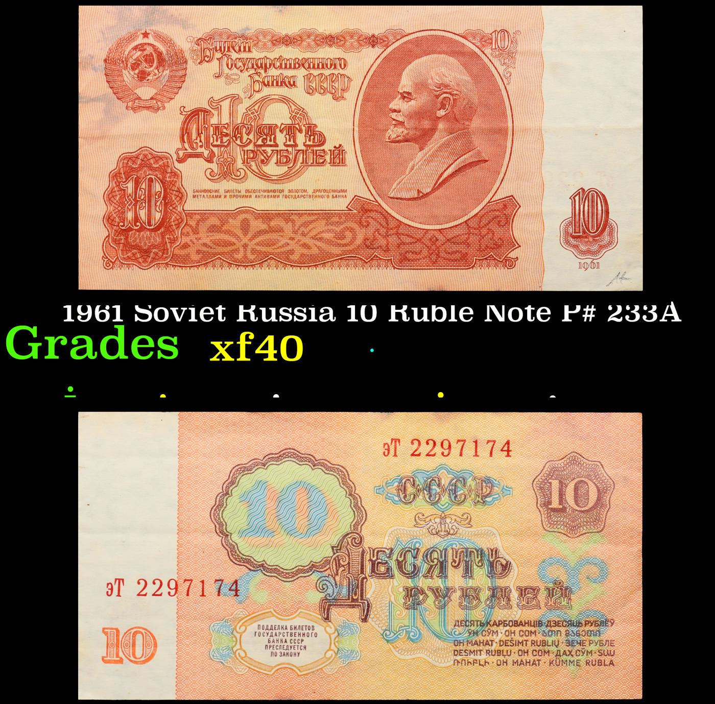 1961 Soviet Russia 10 Ruble Note P# 233A Grades xf.