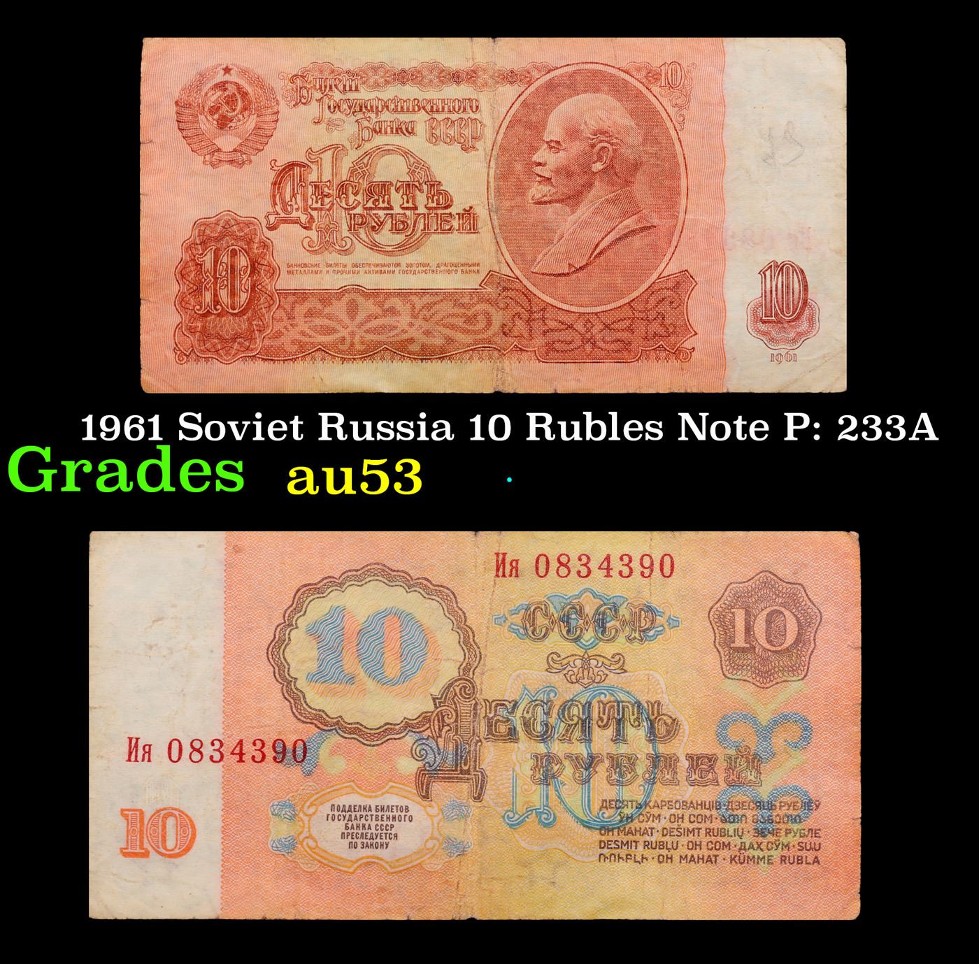 1961 Soviet Russia 10 Rubles Note P: 233A Grades Select AU. Up for auction we have a beautiful, ornate Imperial Ruble note from the final decade of the Russian Empire under Tsar Nicholas II, which managed to survive through the Russian Revolution and Civil War. These notes became relatively useless in the early Soviet period, due to hyperinflation and other factors, and many were lost or destroyed.