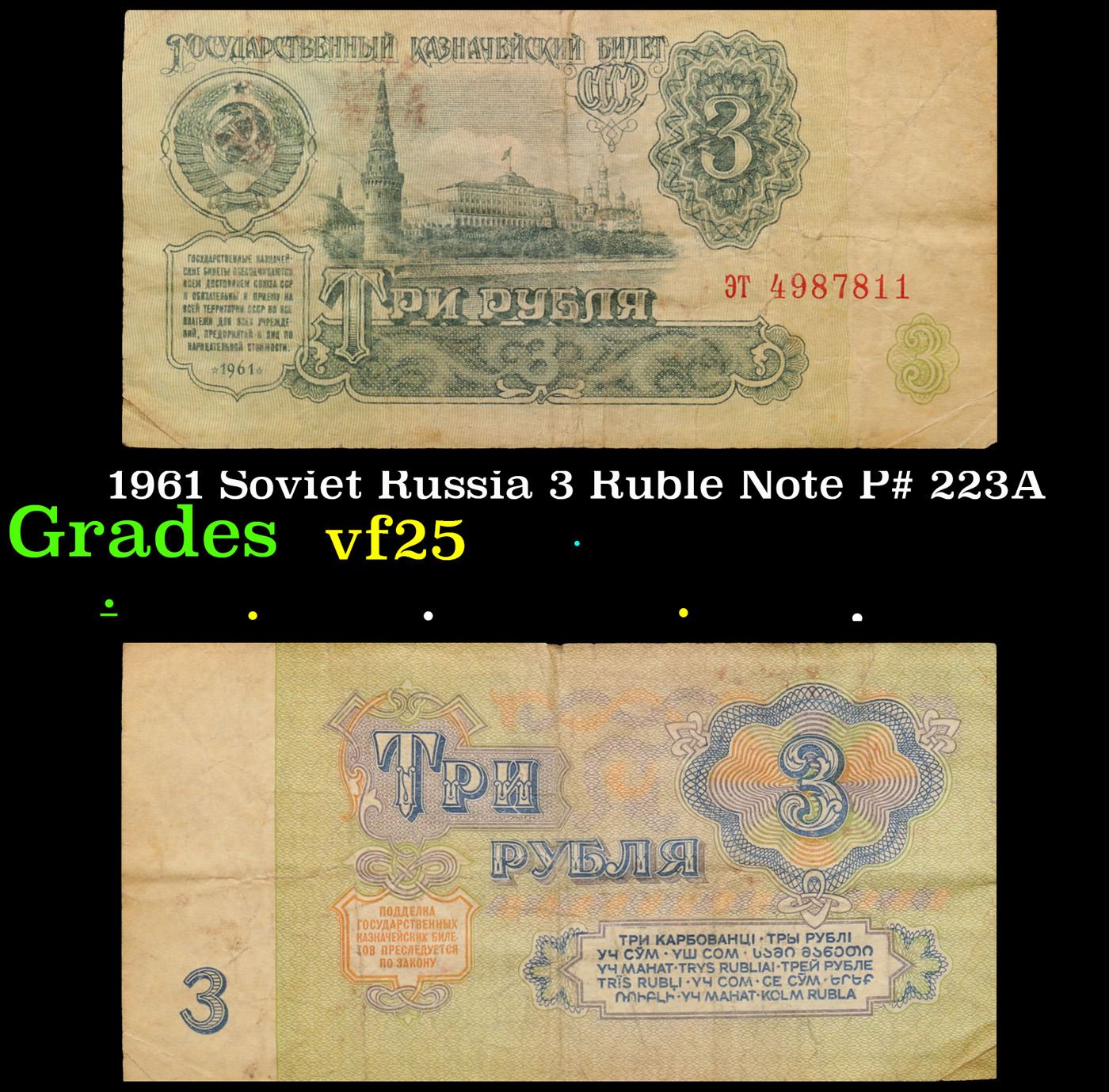 1961 Soviet Russia 3 Ruble Note P# 223A Grades vf+.