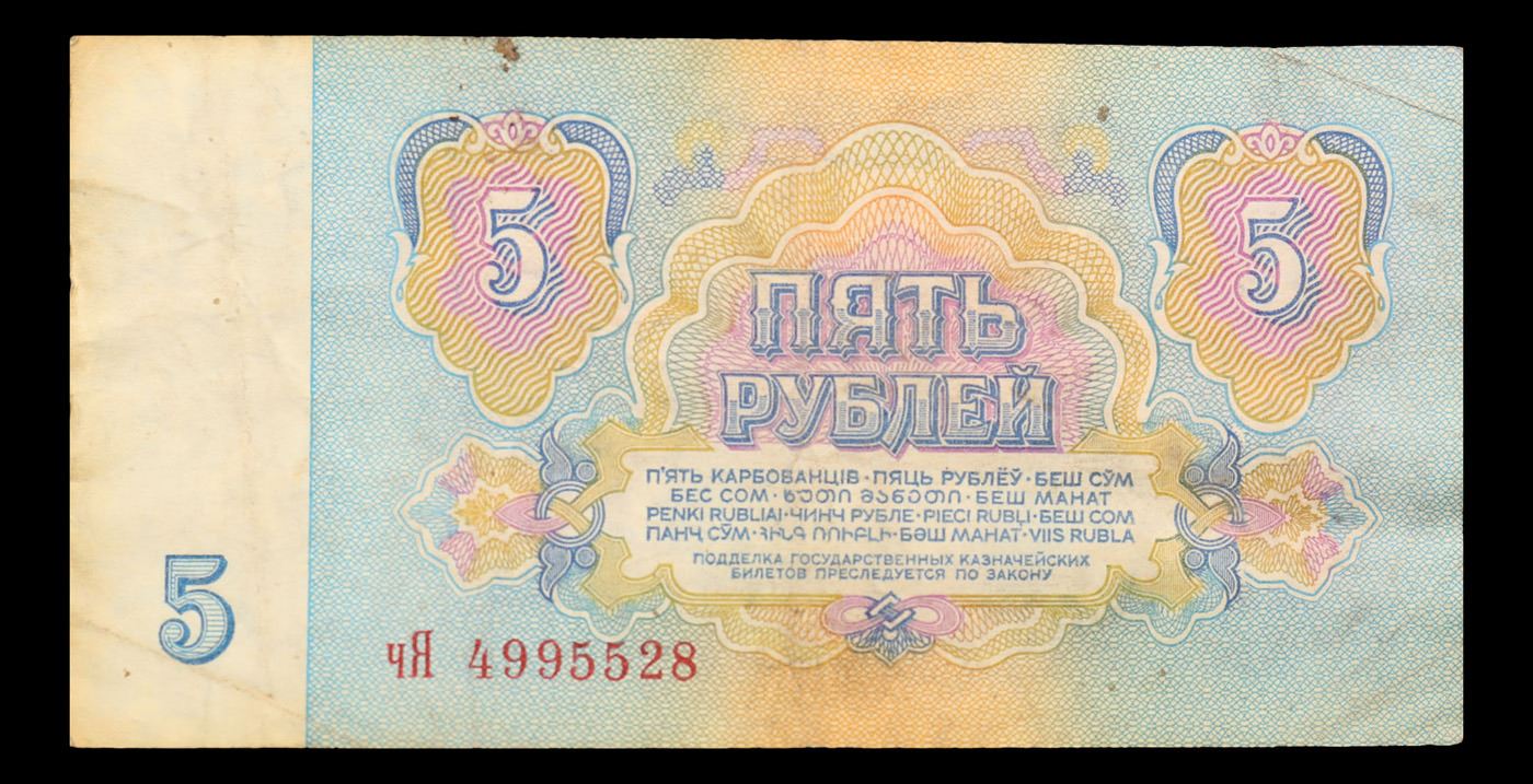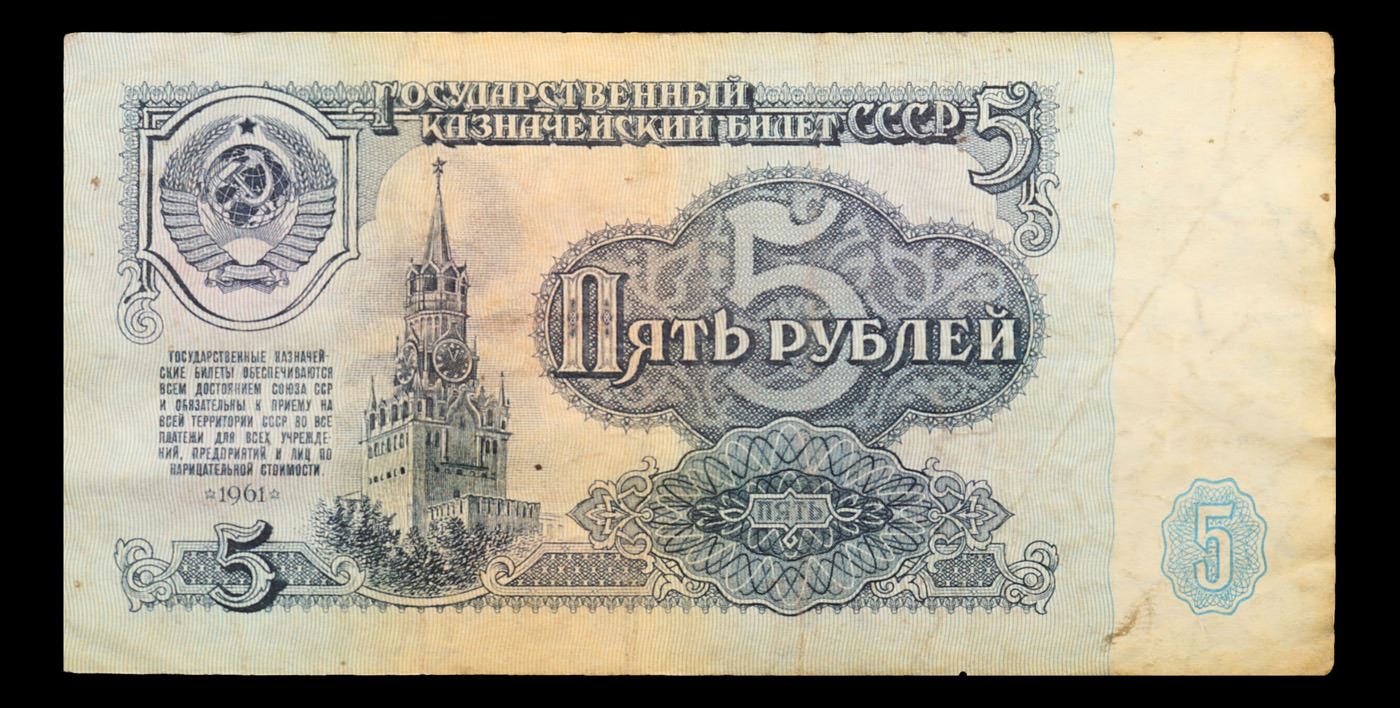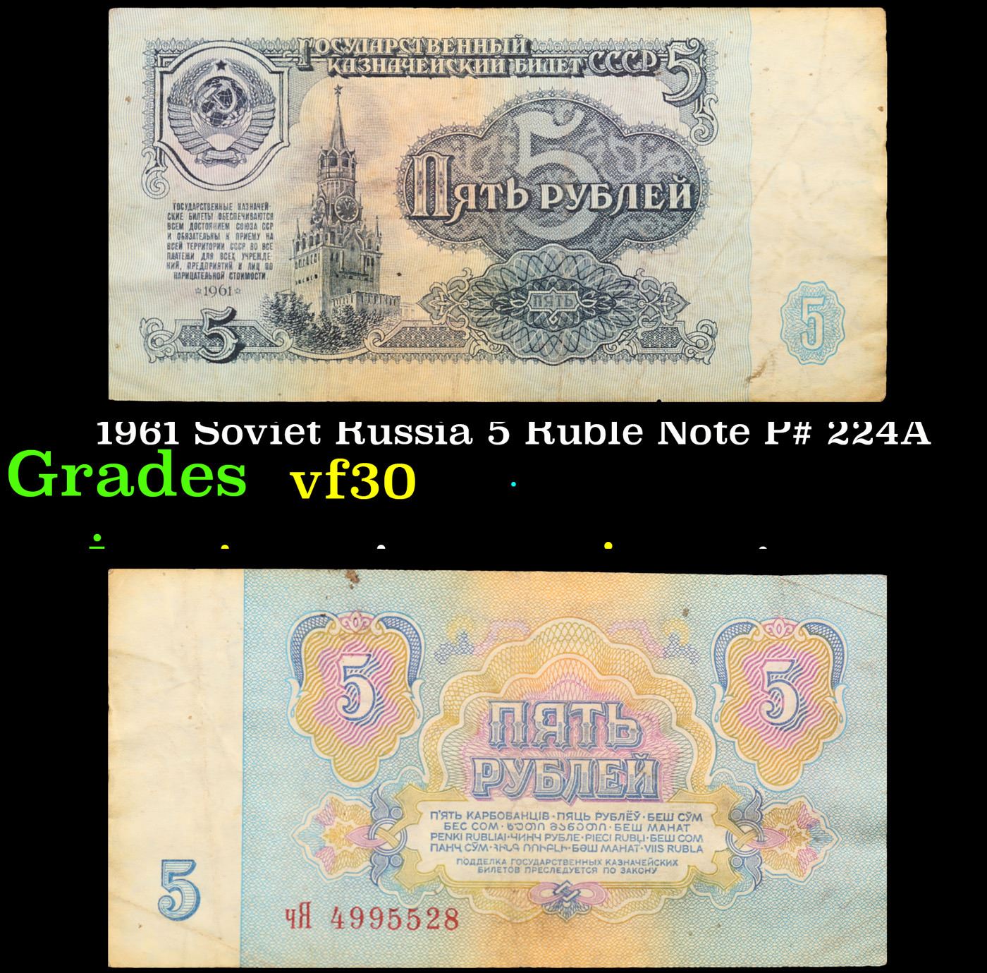 1961 Soviet Russia 5 Ruble Note P# 224A Grades vf++.