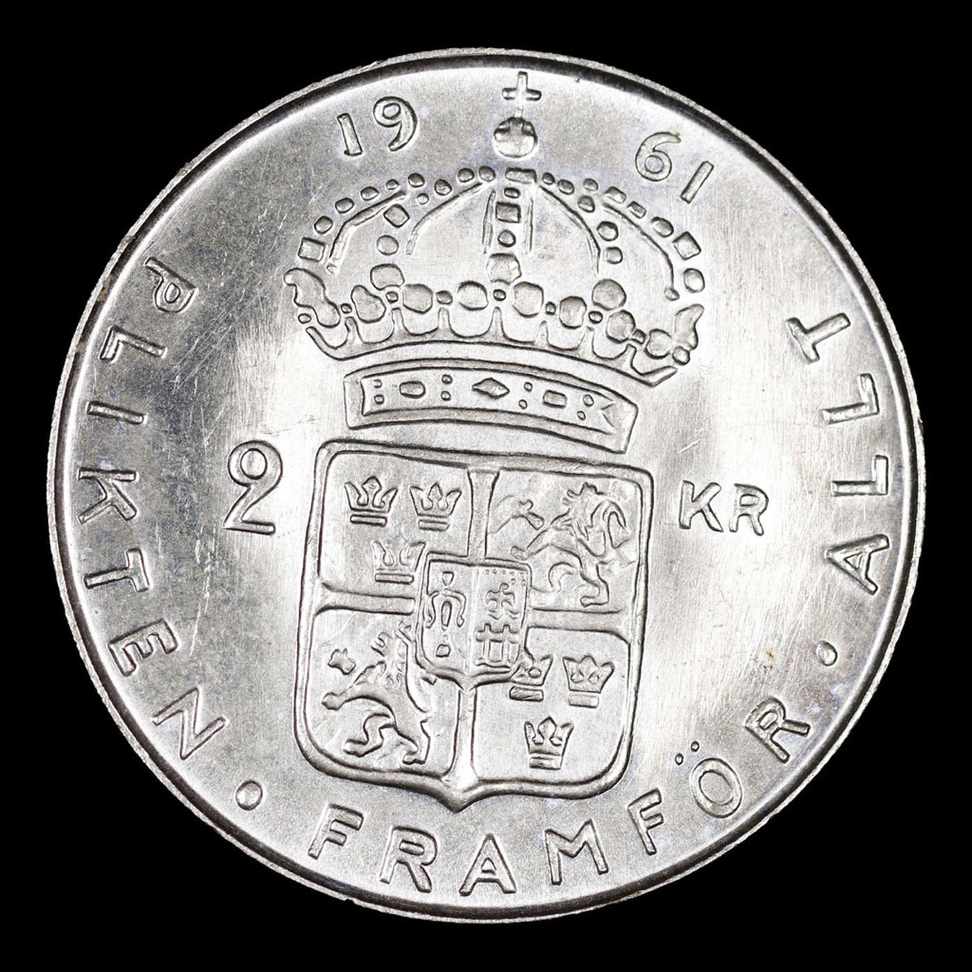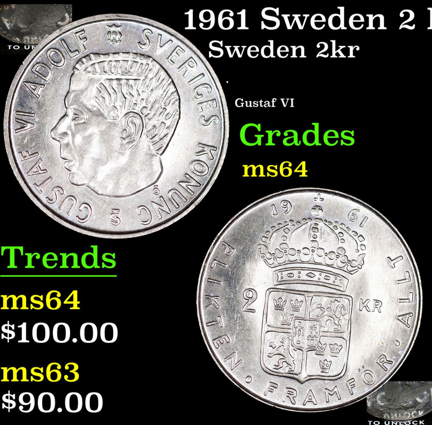 1961 Sweden 2 Kronor Silver KM-827 Grades Choice Unc.