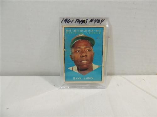 1961 TOPPS #424 BASEBALL PLAYER CARD HANK AARON. HORIZONTAL CREASE. AS SHOWN. VIEW PICTURE FOR DETAIL.