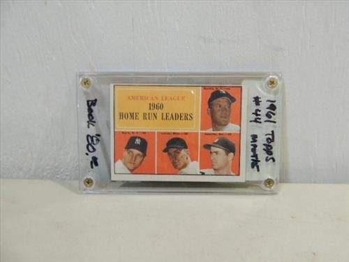 1961 TOPPS #44 BASEBALL H.R. LEADERS CARD MICKEY MANTLE, ROGER MARIS. AS SHOWN. VIEW PICTURE FOR DETAIL.