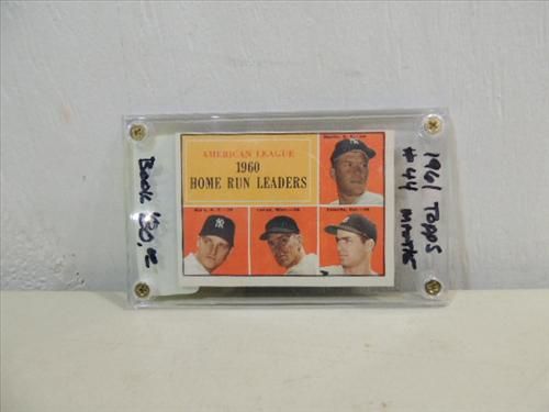 1961 TOPPS #44 BASEBALL H.R. LEADERS CARD MICKEY MANTLE, ROGER MARIS. AS SHOWN. VIEW PICTURE FOR DETAIL.