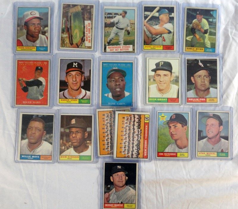 1961 TOPPS BASEBALL LOT (58 CDS) MANTLE NM, MAYS, F. ROBINSON & MORE