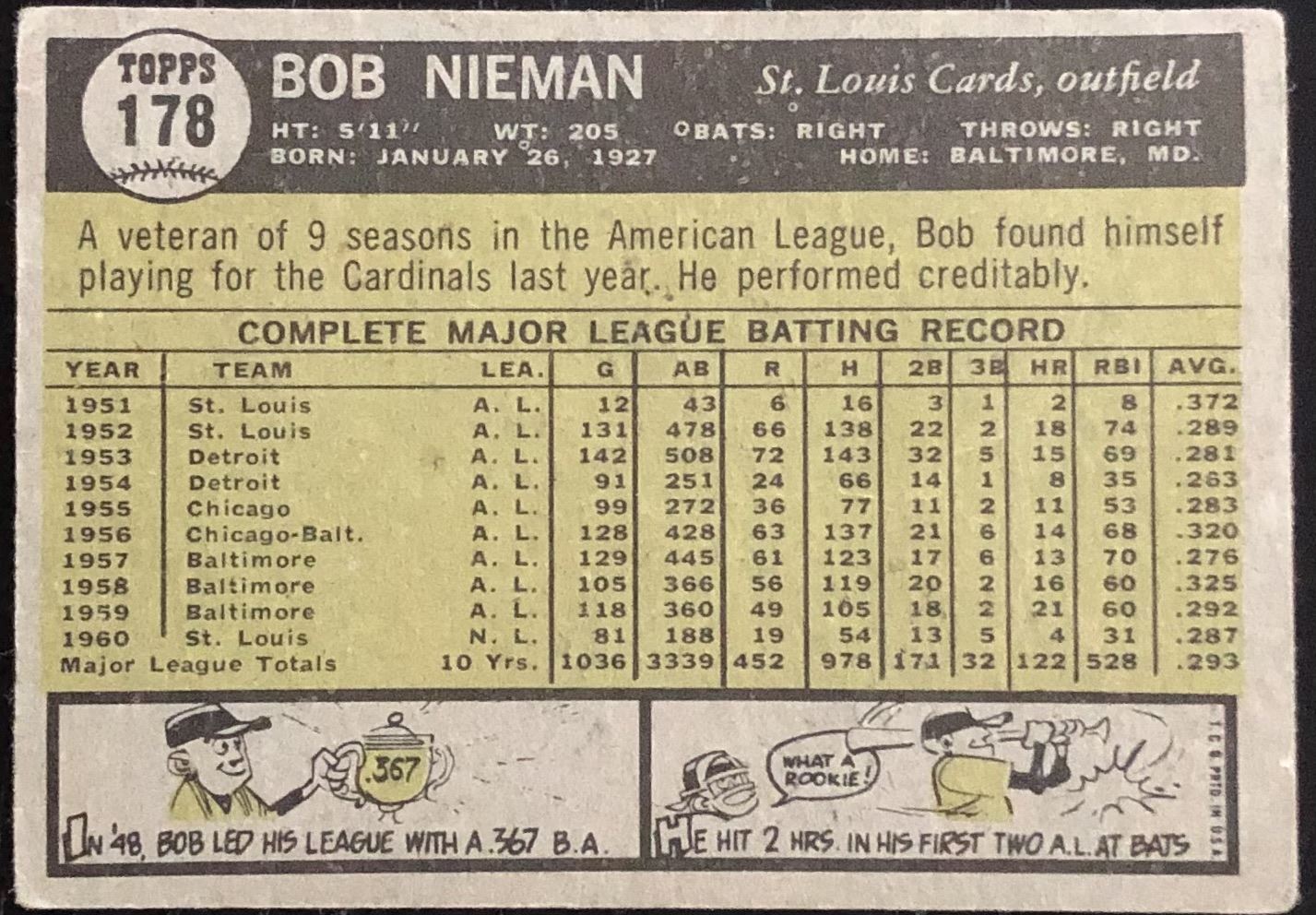 Card #178 MLB, baseball, vintage