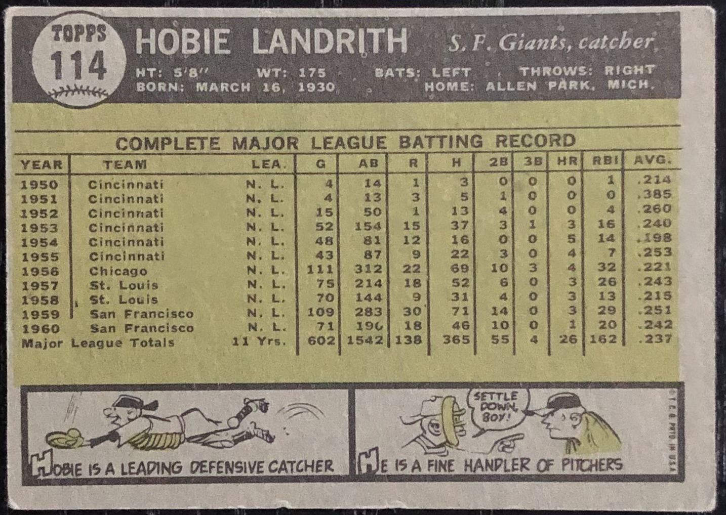 Card #114 MLB, baseball, vintage