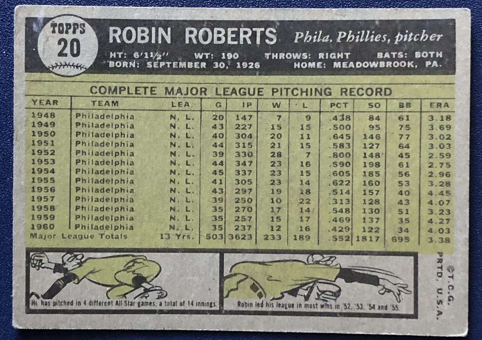 Card #20, scuff paper loss on front of card vintage, MLB, baseball, hall of fame