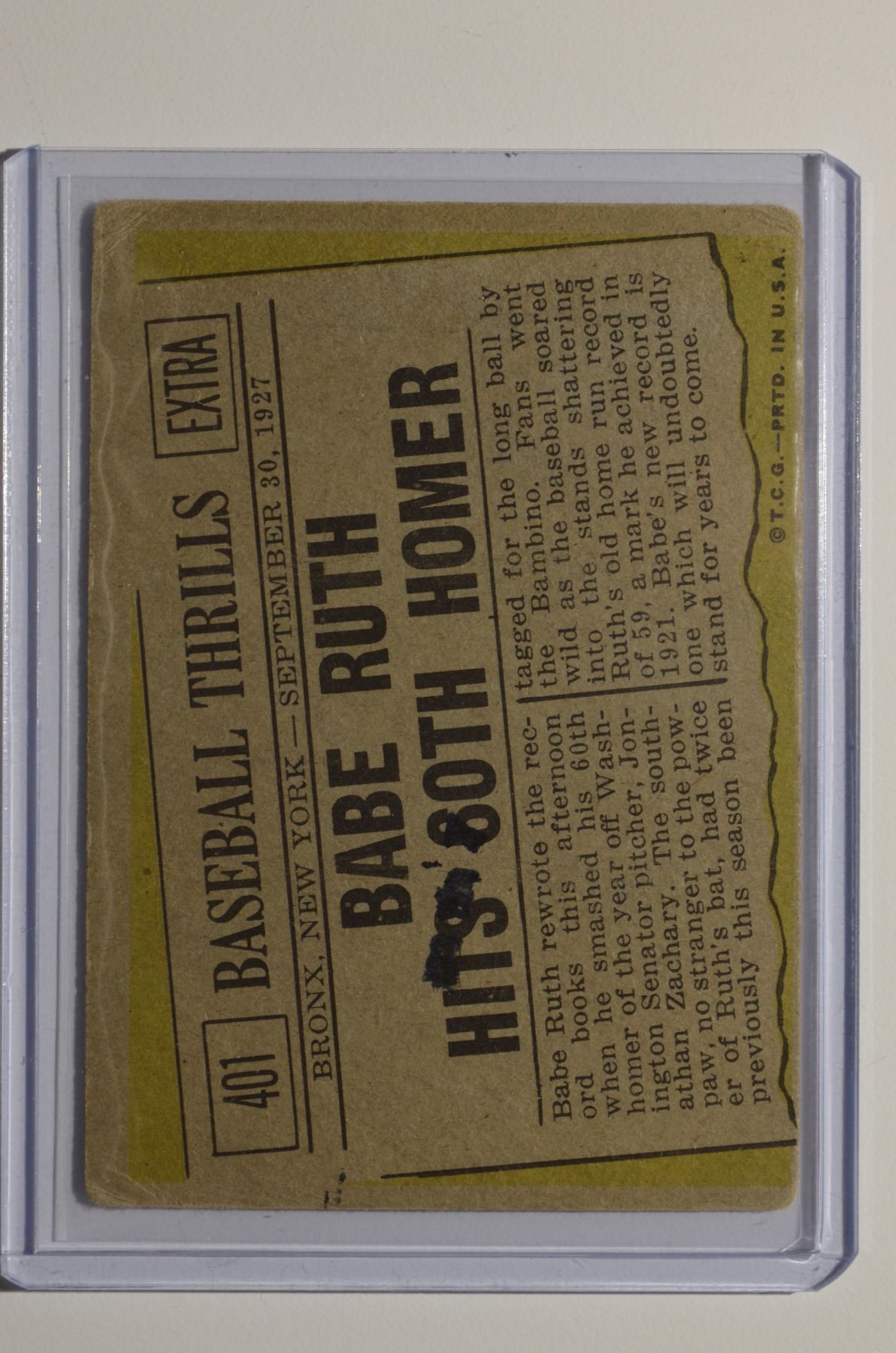1961 Topps #401 Babe Ruth 60th HR