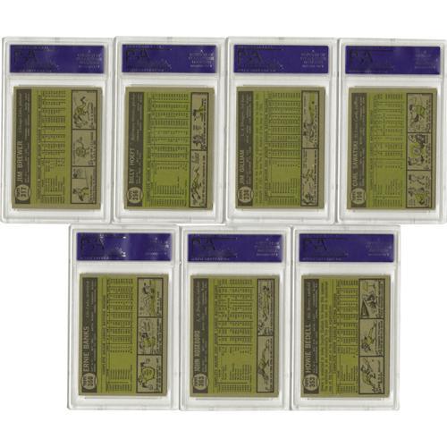 <B>1961 Topps Baseball PSA Mint 9 Lot of 7.</B></I> Exceptionally high-grade offerings were pulled directly from a vending case and have aged not a minute since the days of the M&M boys' historic home run chase. This prize-winning lot consists of the following: Carl Sawatski #198, Jim Gilliam #238, Billy Hoeft #256, Jim Brewer #317, Ernie Banks #350, Howie Bedell #353, John Roseboro #363. Tremendous break down value here, or a smart way to add a few points to your PSA Set Registry score. SMR value $1410.<BR><BR><b>Shipping:</b> Sportscard (<a target="_blank" href="http://www.heritageauctions.com/common/shipping.php">view shipping information</a>)