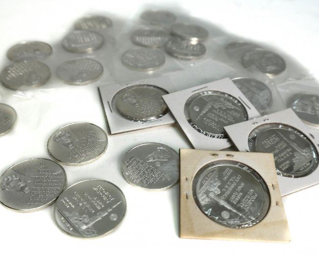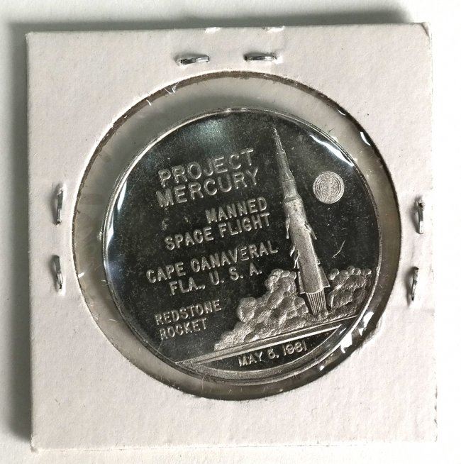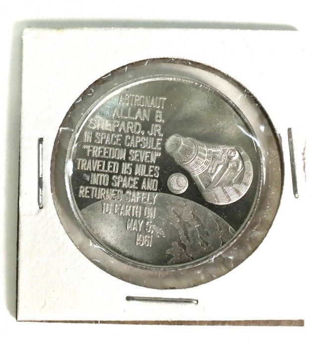 [NASA Space Exploration] Group of twenty six commemorative medals, all stamped "sterling" on edge. Issued to commemorate the Project Mercury manned space flight of astronaut Alan B. Shepard Jr. aboard the Freedom Seven Capsule, May 5th, 1961. All 34mm. Proof condition. Total weight 12.16 ozt / 1108 grams.