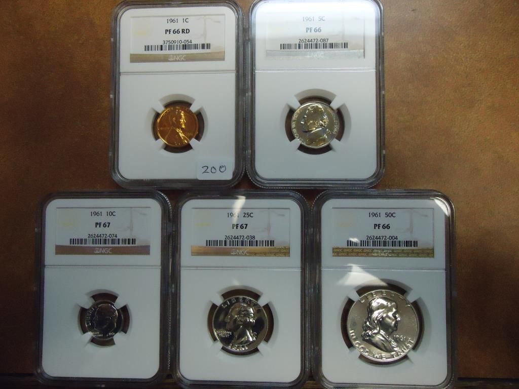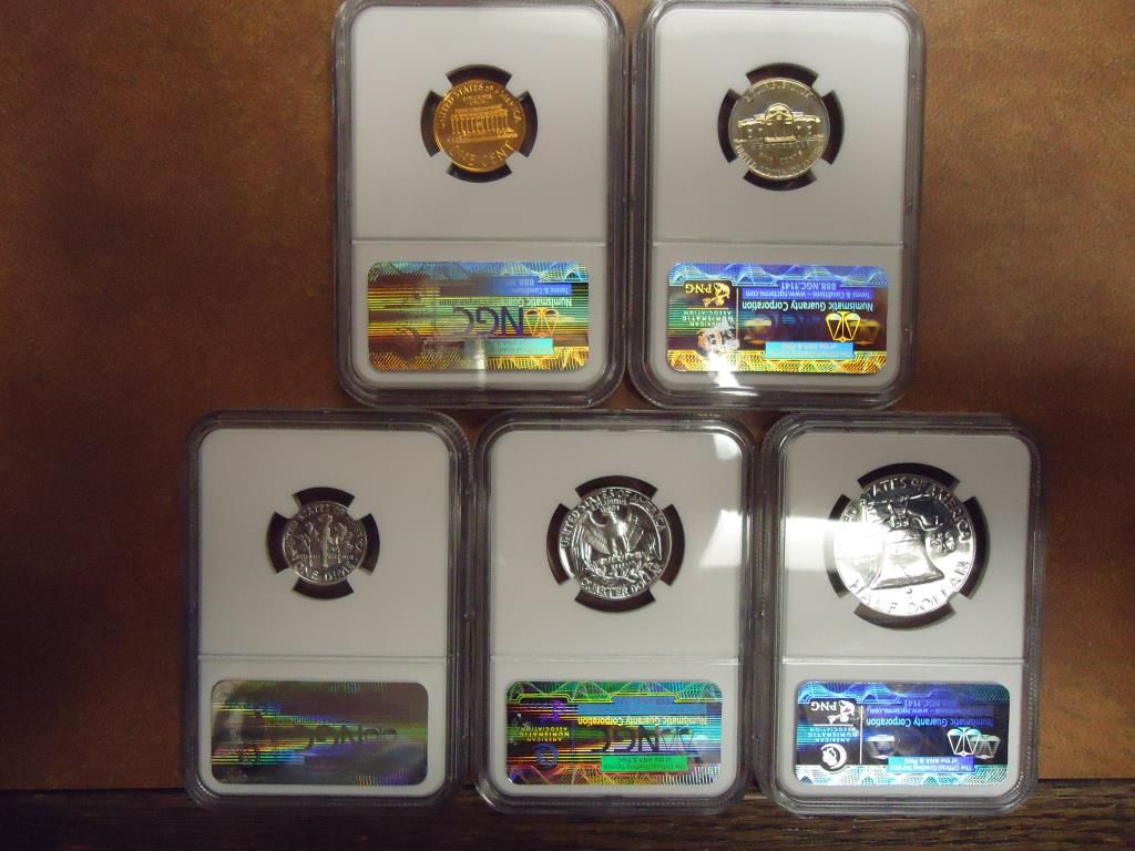 CENT IS PF66RD, NICKEL IS PF66, DIME IS PF67, QUARTER IS PF67 AND HALF IS PF66