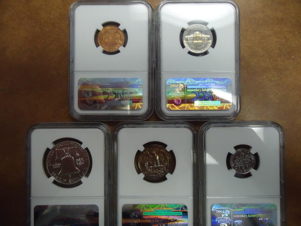 CENT IS PF65RD, NICKEL IS PF66, DIME IS PF64, QUARTER IS PF65 AND HALF IS PF66