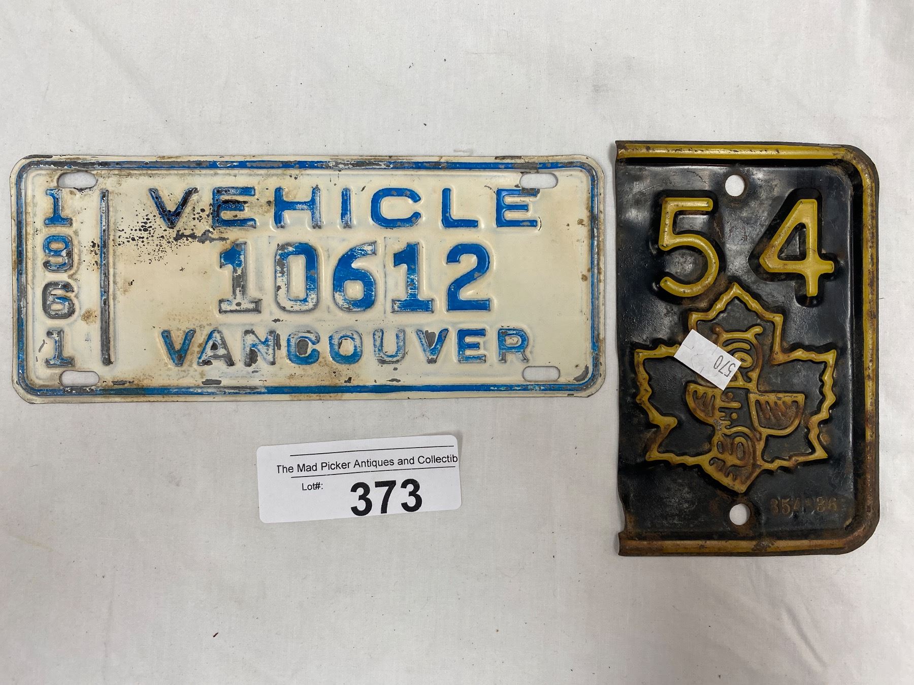 1961 Vancouver Vehicle Plate And 1954 Add On Plate