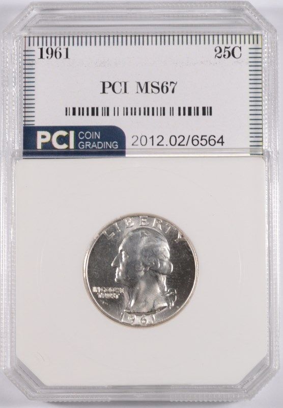 1961 WASHINGTON QUARTER, PCI MS-67 TRENDS FOR $3000.00