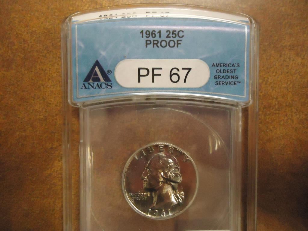 1961 WASHINGTON SILVER QUARTER ANACS PF67