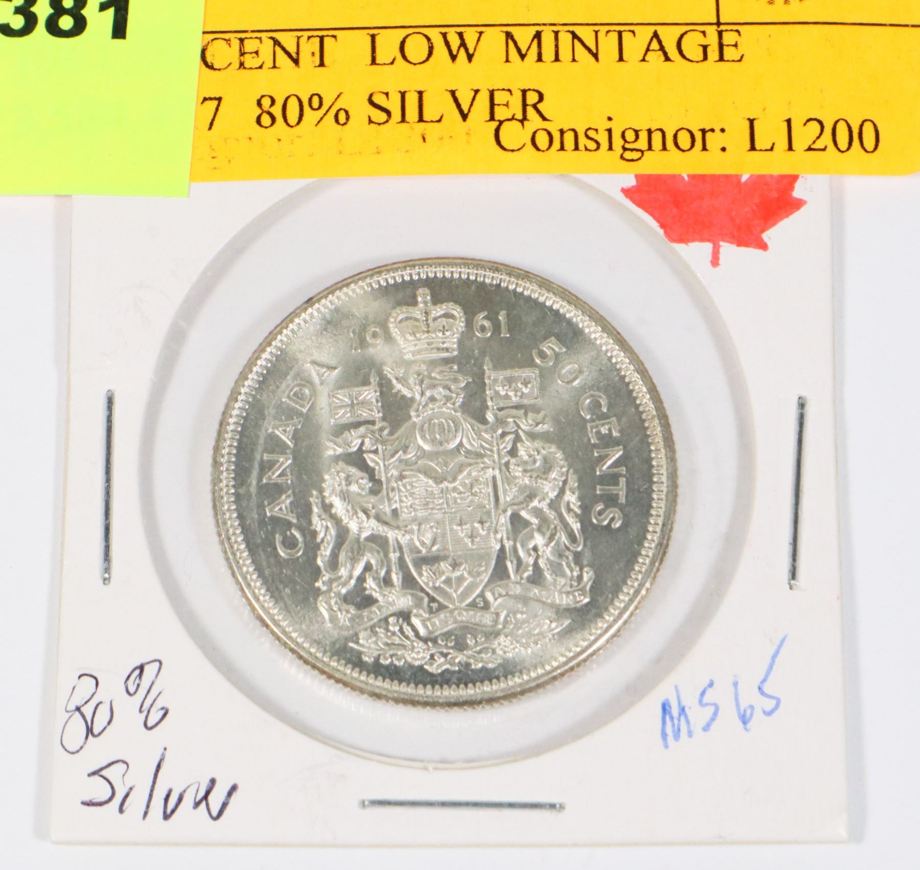 1961 "WHITE" 50 CENT LOW MINTAGE 3,584,417 80% SILVER