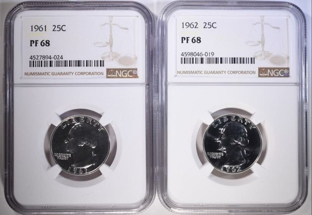 One 1961 and 1962 Washington Quarters NGC PF68.