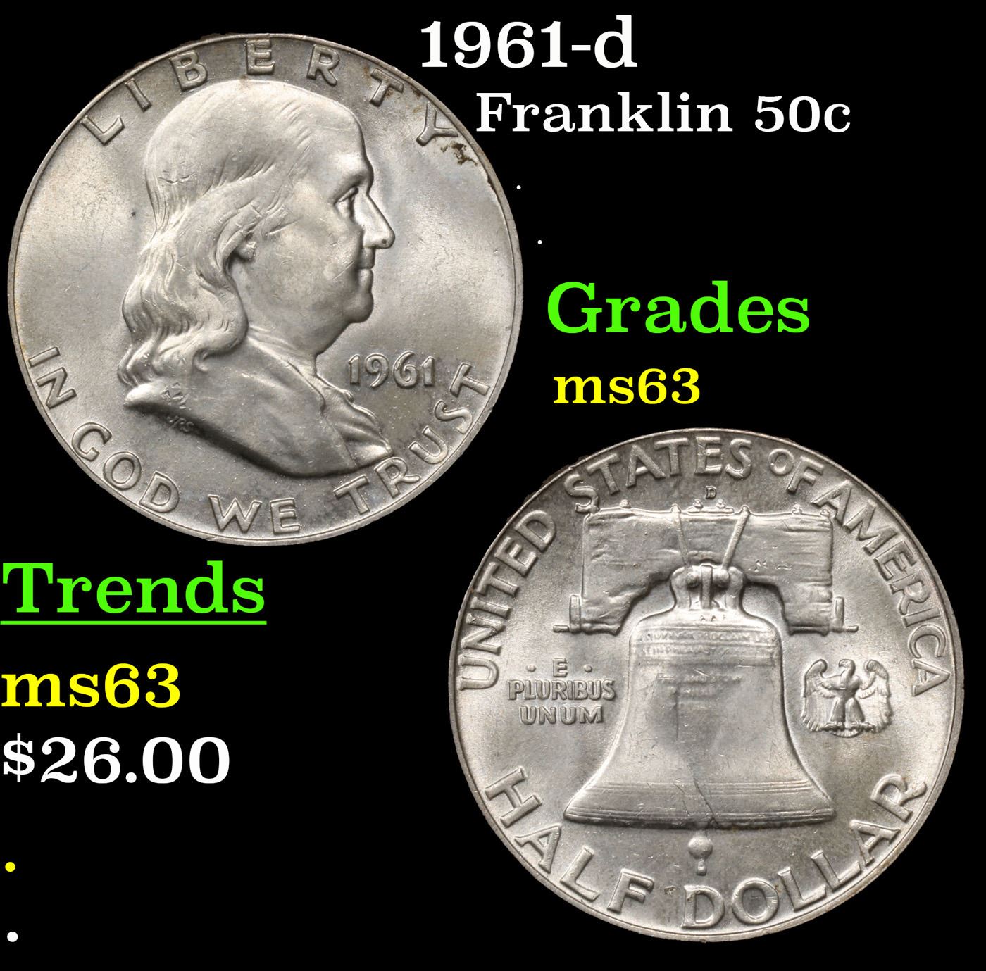 1961-d Franklin Half Dollar 50c Grades Select Unc.