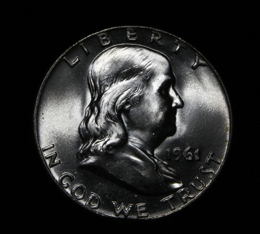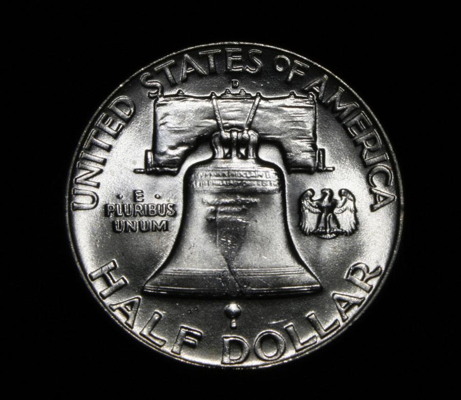 A vey close to Gem Uncirculated Example. A mark on the upper cheek keeps this nice bright coin at Choice. This coin is part of a very high end complete Franklin set we are auctioning off this weekend. Many are Full Bell Lines, Nicest set we have ever been consigned. Coin World's Coin Values lists ms64 at $30 and The Wholesale Greysheet lists ms64 17.00. Estimated Value $22