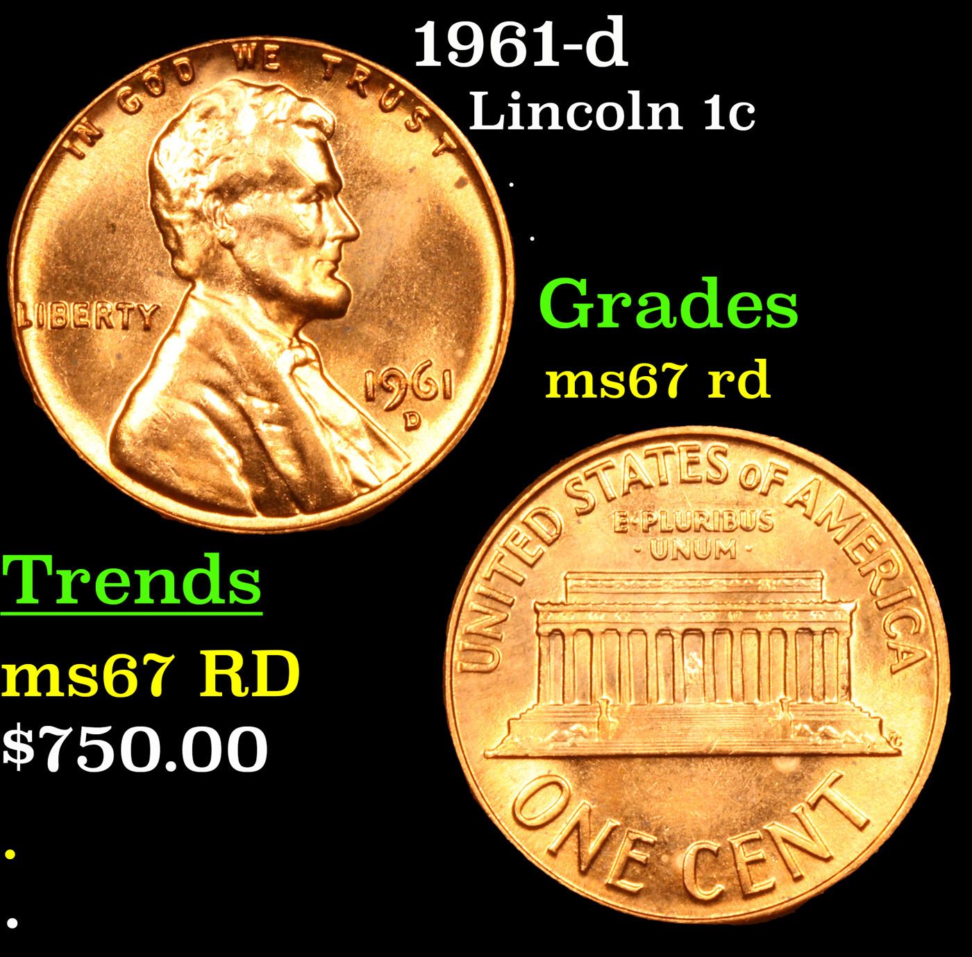 1961-d Lincoln Cent 1c Grades GEM++ Unc RD.
