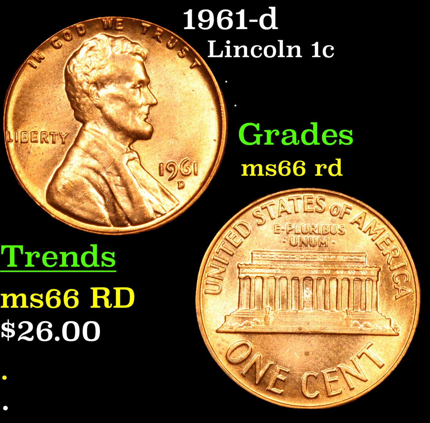 1961-d Lincoln Cent 1c Grades GEM+ Unc RD.