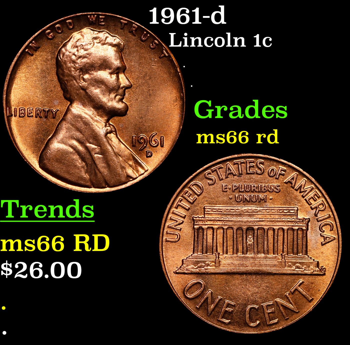1961-d Lincoln Cent 1c Grades GEM+ Unc RD.