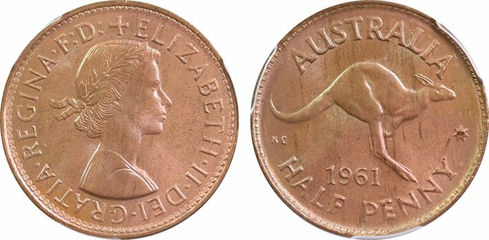 1961(p) Australian Half Penny - PCGS MS 66RB