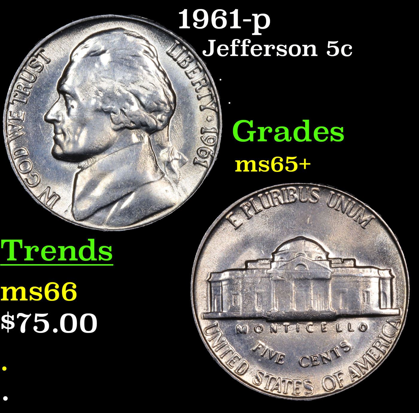 1961-p Jefferson Nickel 5c Grades GEM+ Unc.