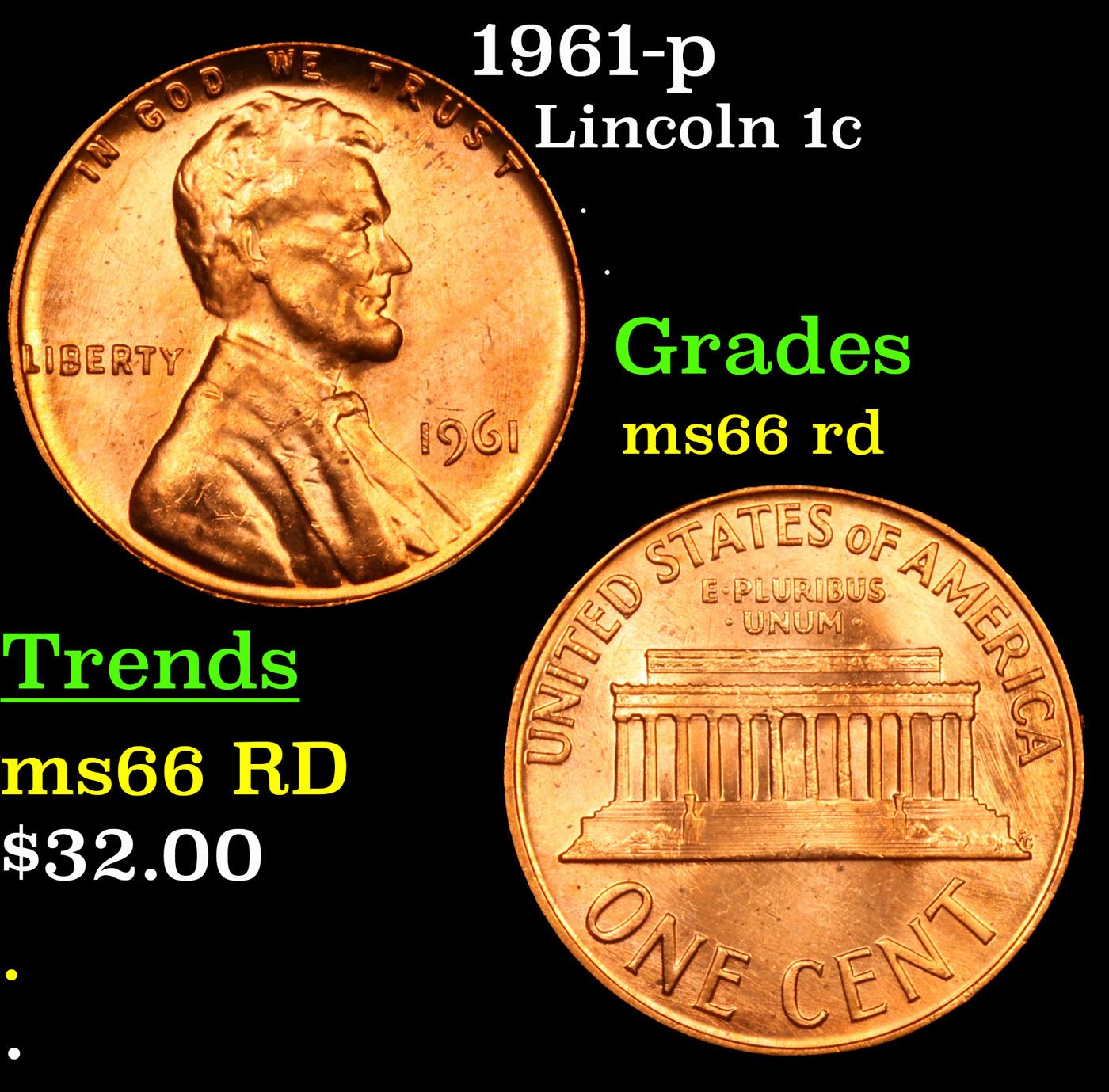 1961-p Lincoln Cent 1c Grades GEM+ Unc RD.