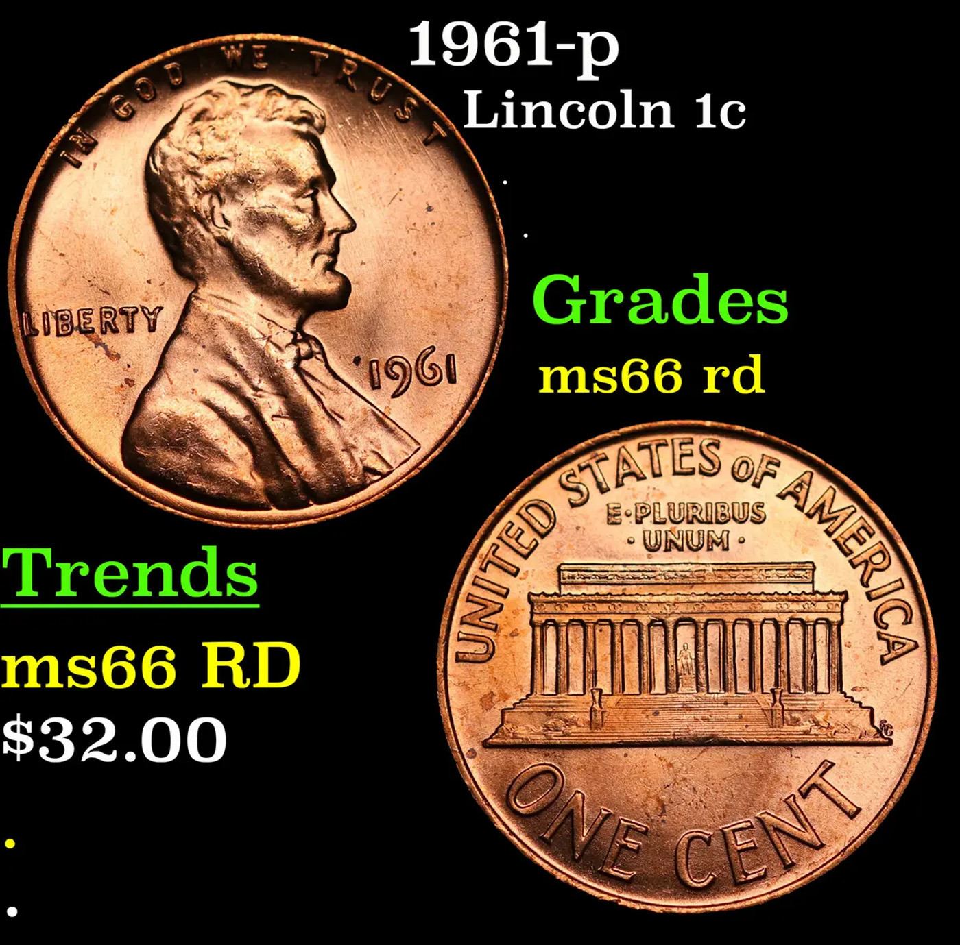 1961-p Lincoln Cent 1c Grades GEM+ Unc RD.