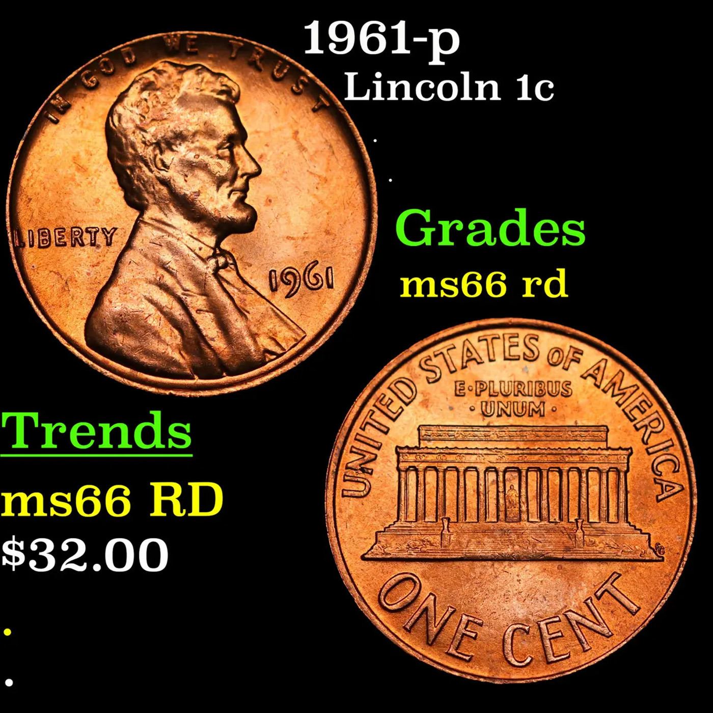 1961-p Lincoln Cent 1c Grades GEM+ Unc RD.